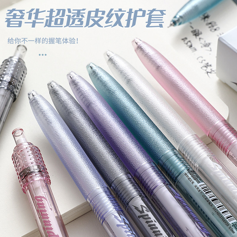 晴耕雨读刷题笔专用高颜值速干按动中性笔ins黑笔圆珠笔ST笔学生用考试笔顺滑0.5笔芯黑色水性签字笔水笔碳素