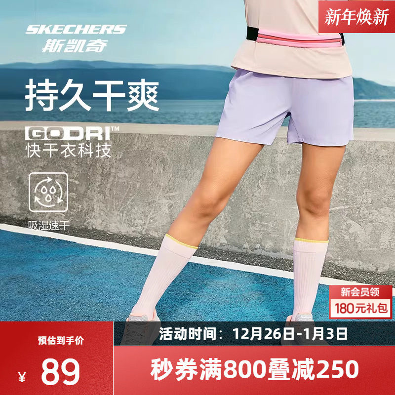 斯凯奇2025新品女子速干梭织运动短裤科技吸湿速干