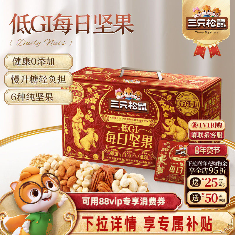 三只松鼠_低GI纯坚果每日坚果750g/30包健康送礼零食混合干果果仁