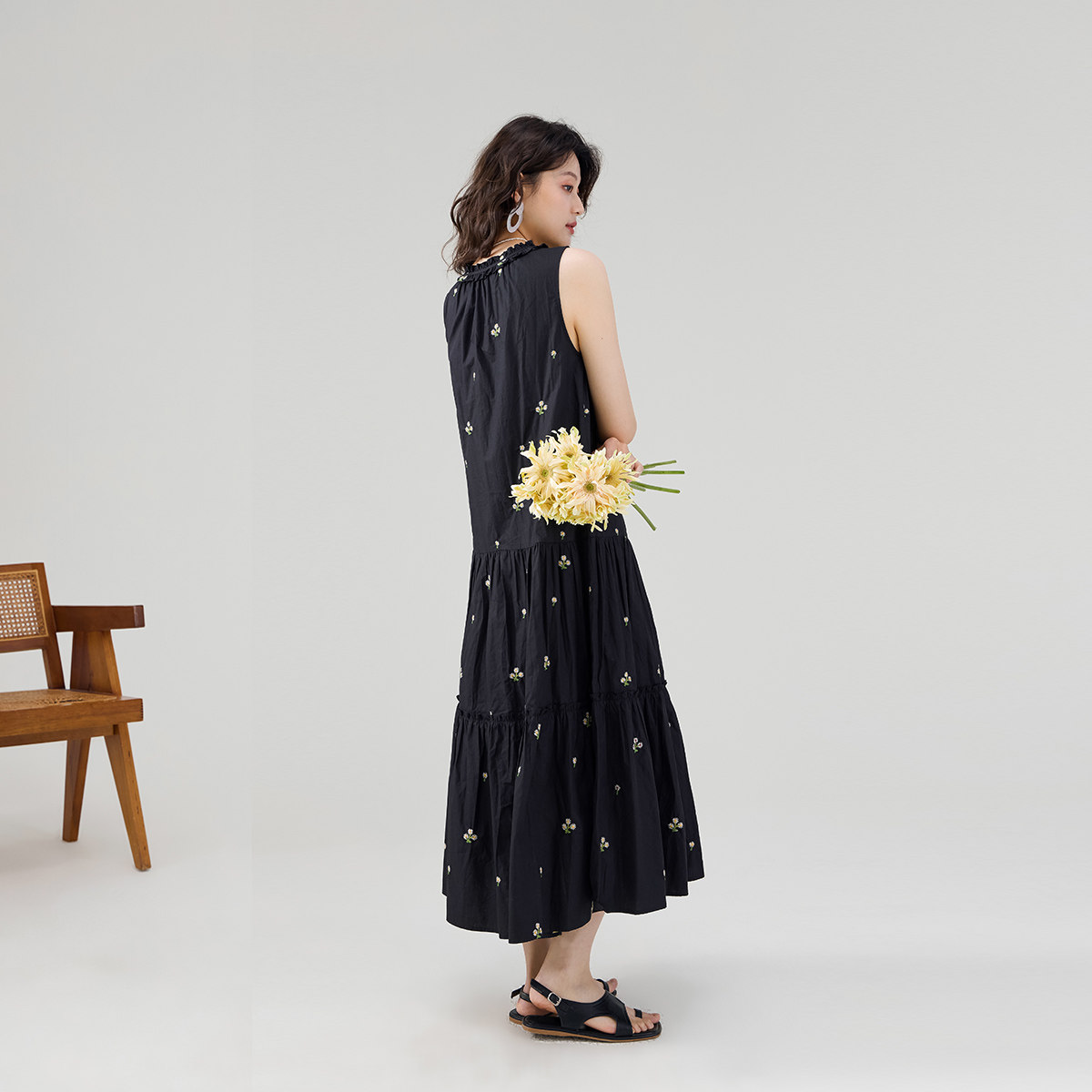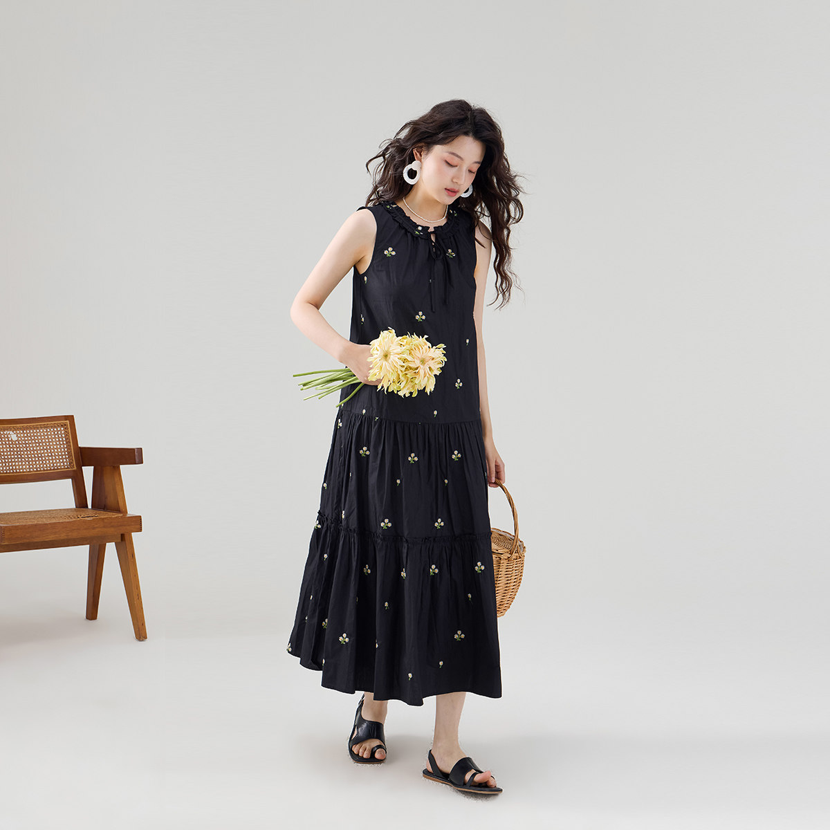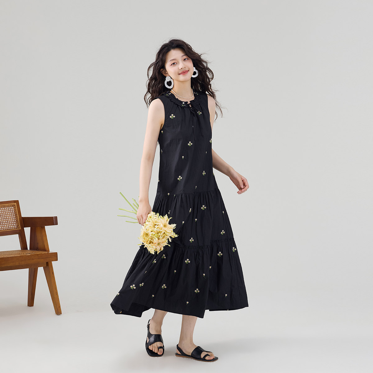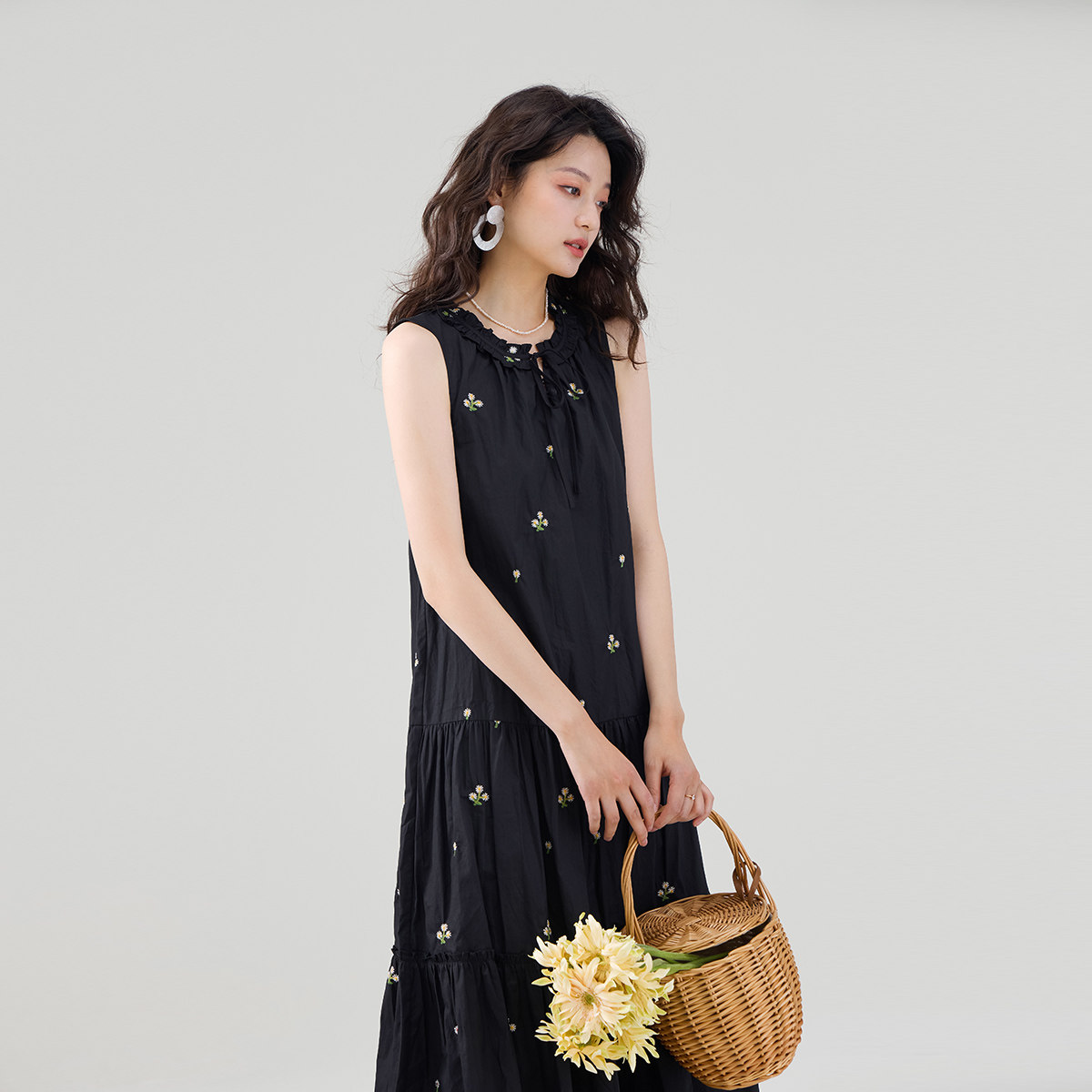 QY2 2026年春夏新款女装黑色无袖简约风格宽松版型连衣裙
