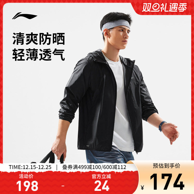 李宁防晒衣夏防泼水薄外套抗紫外线轻量户外登山皮肤衣运动风衣男