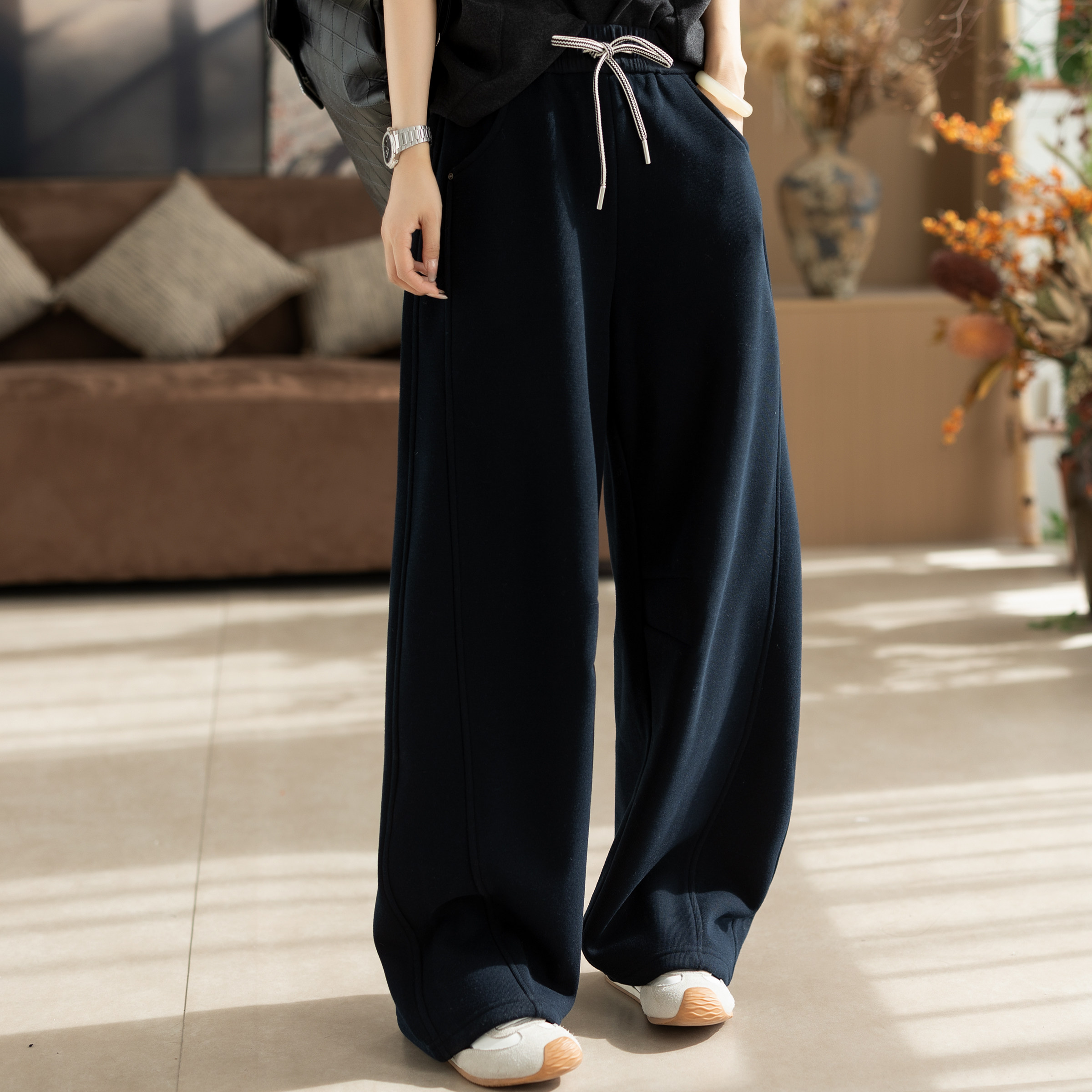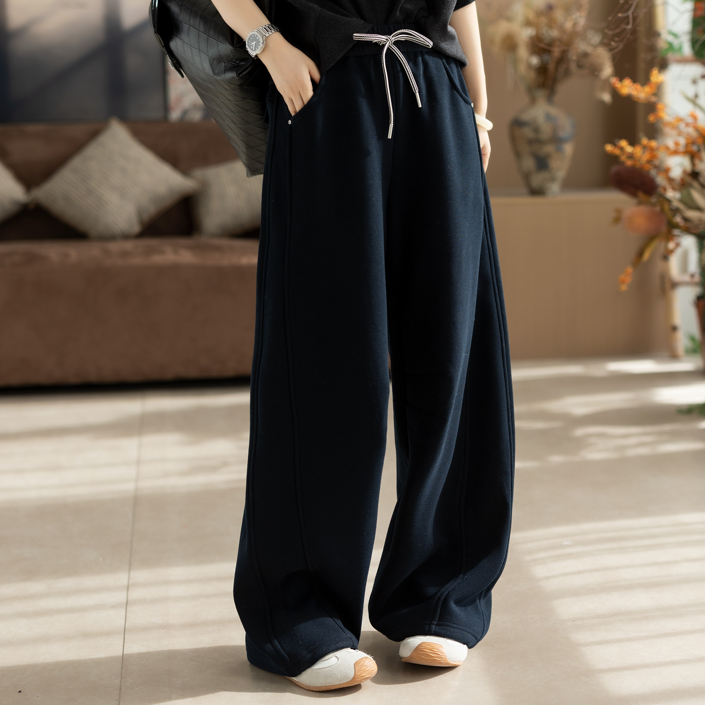 糯米裤女羊羔绒垂坠感软糯加绒加厚秋冬韩系慵懒松弛感阔腿裤TB