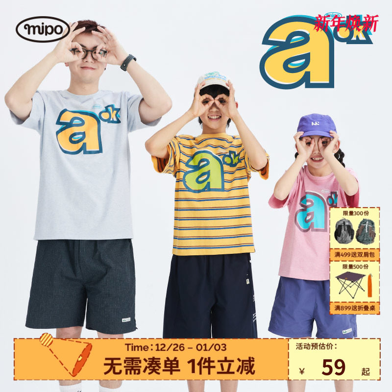 mipo夏季儿童T恤亲子短袖男女童透气舒适字母印花一家三口姐弟装
