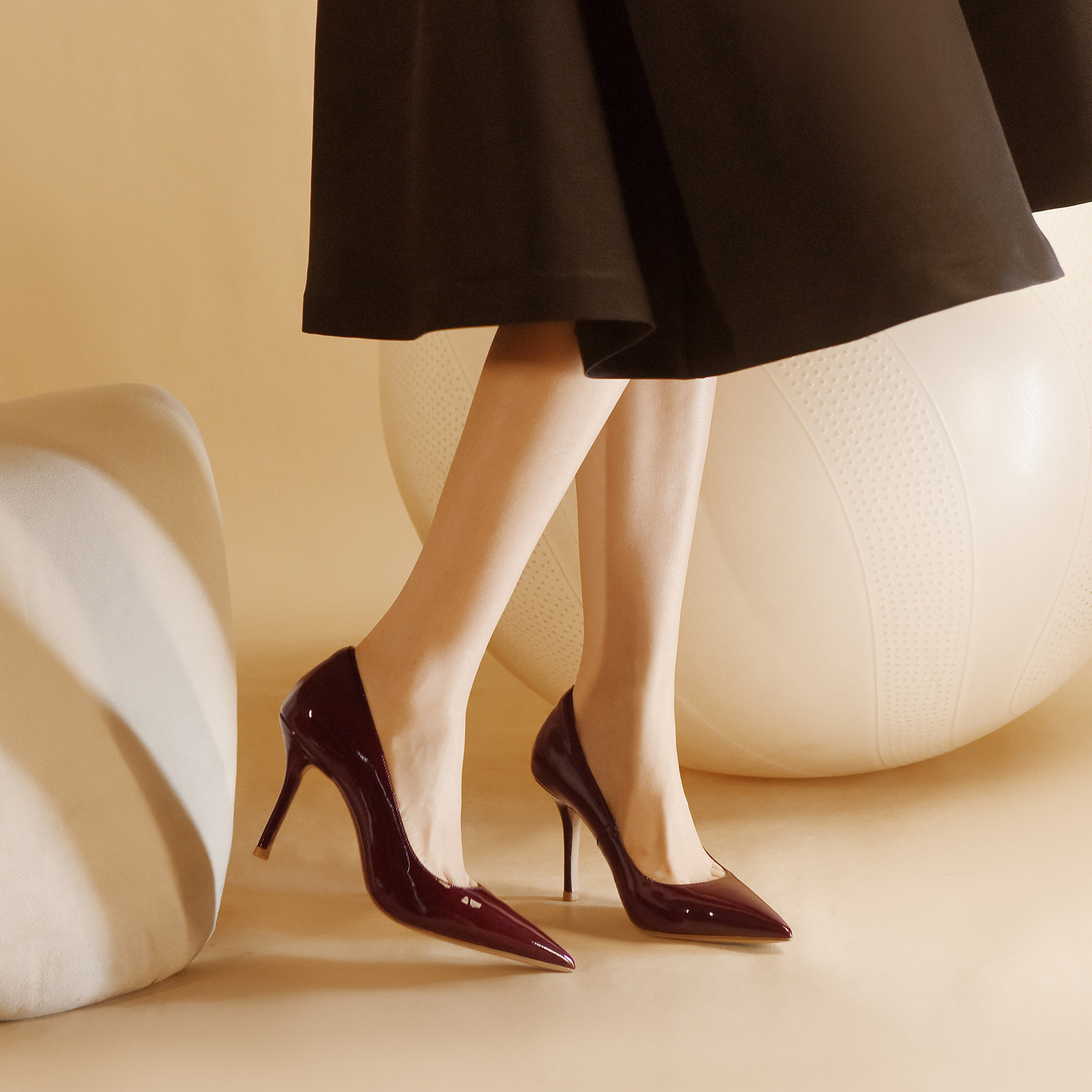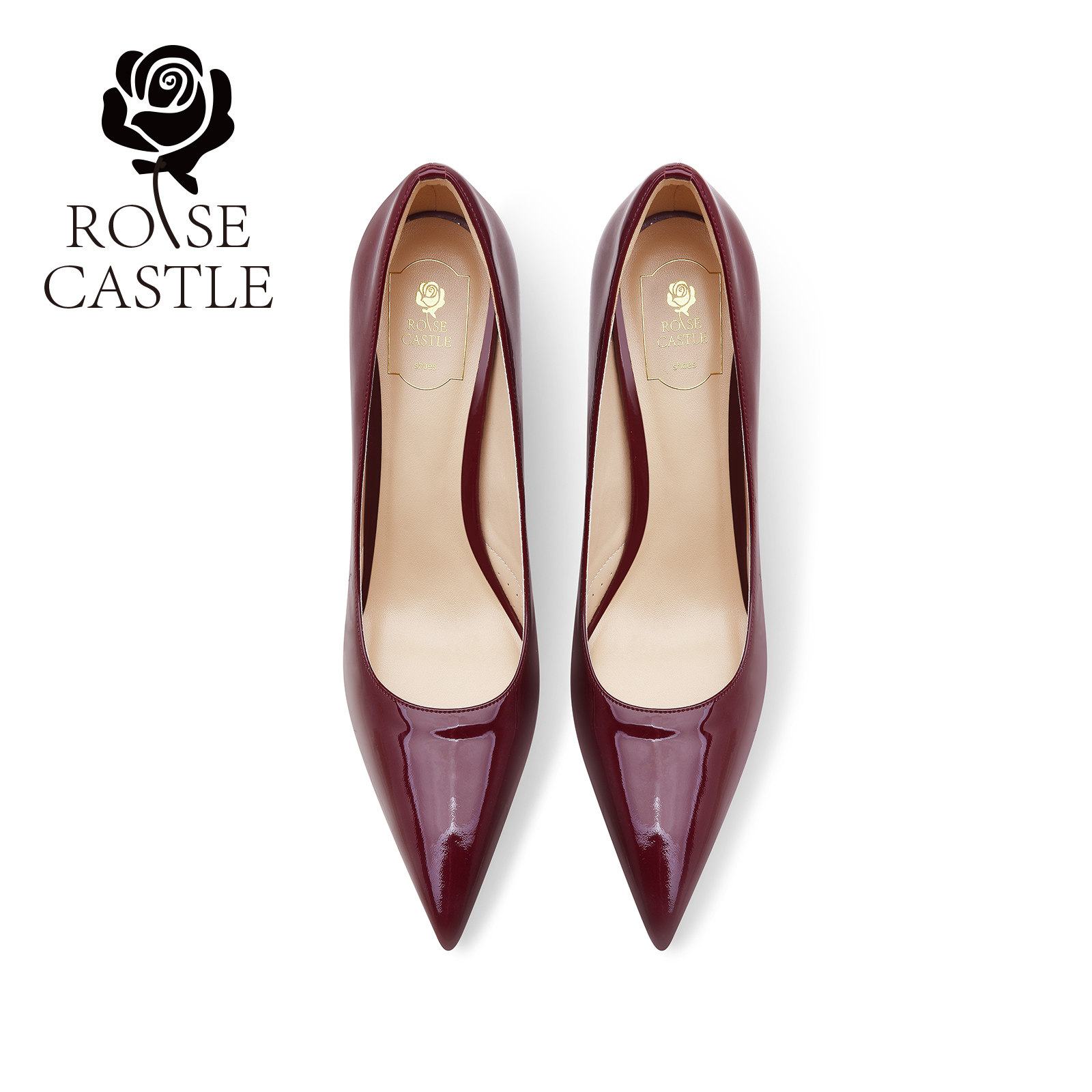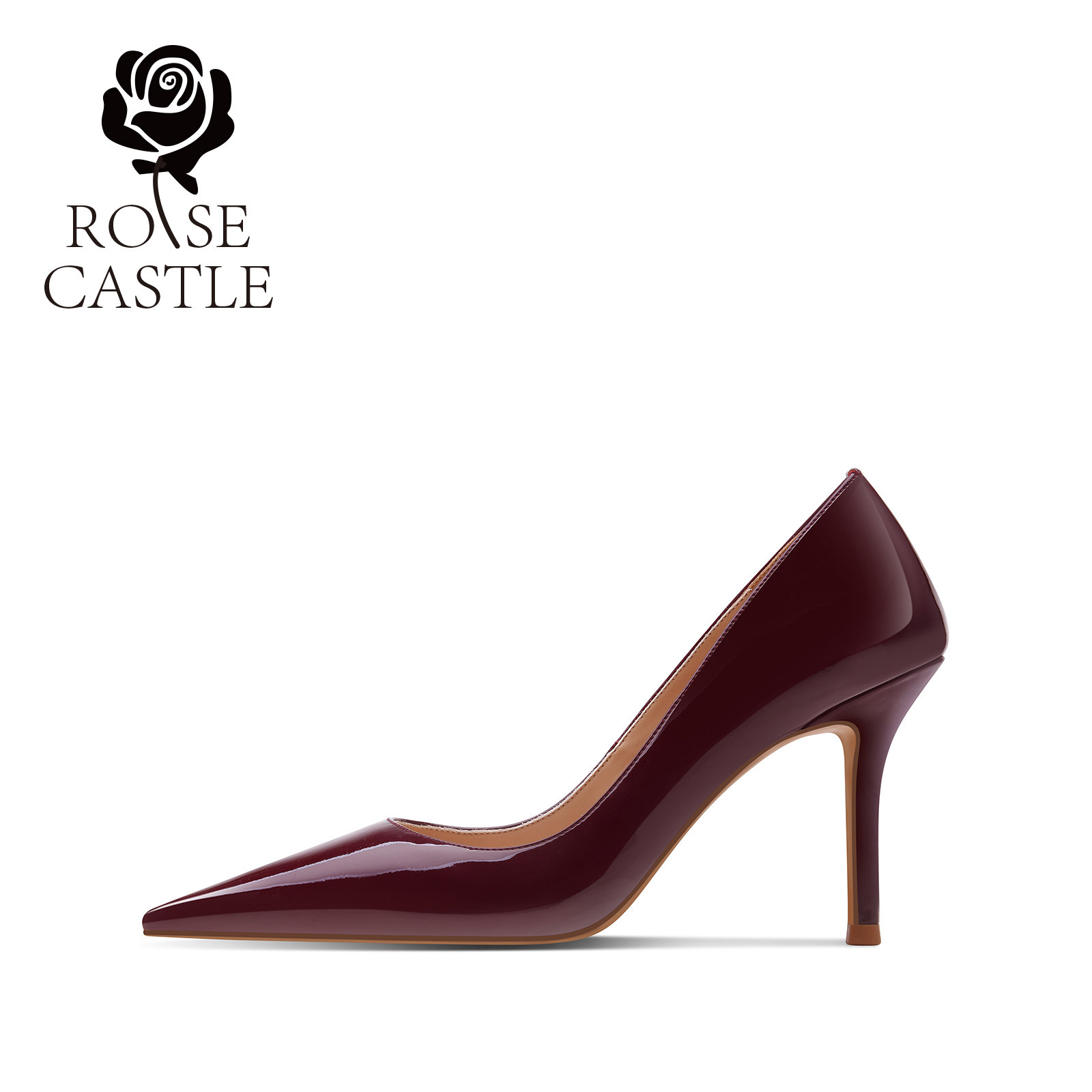 rosecastle 尖头浅口单鞋酒红色漆皮高跟鞋女细跟晚宴派对鞋