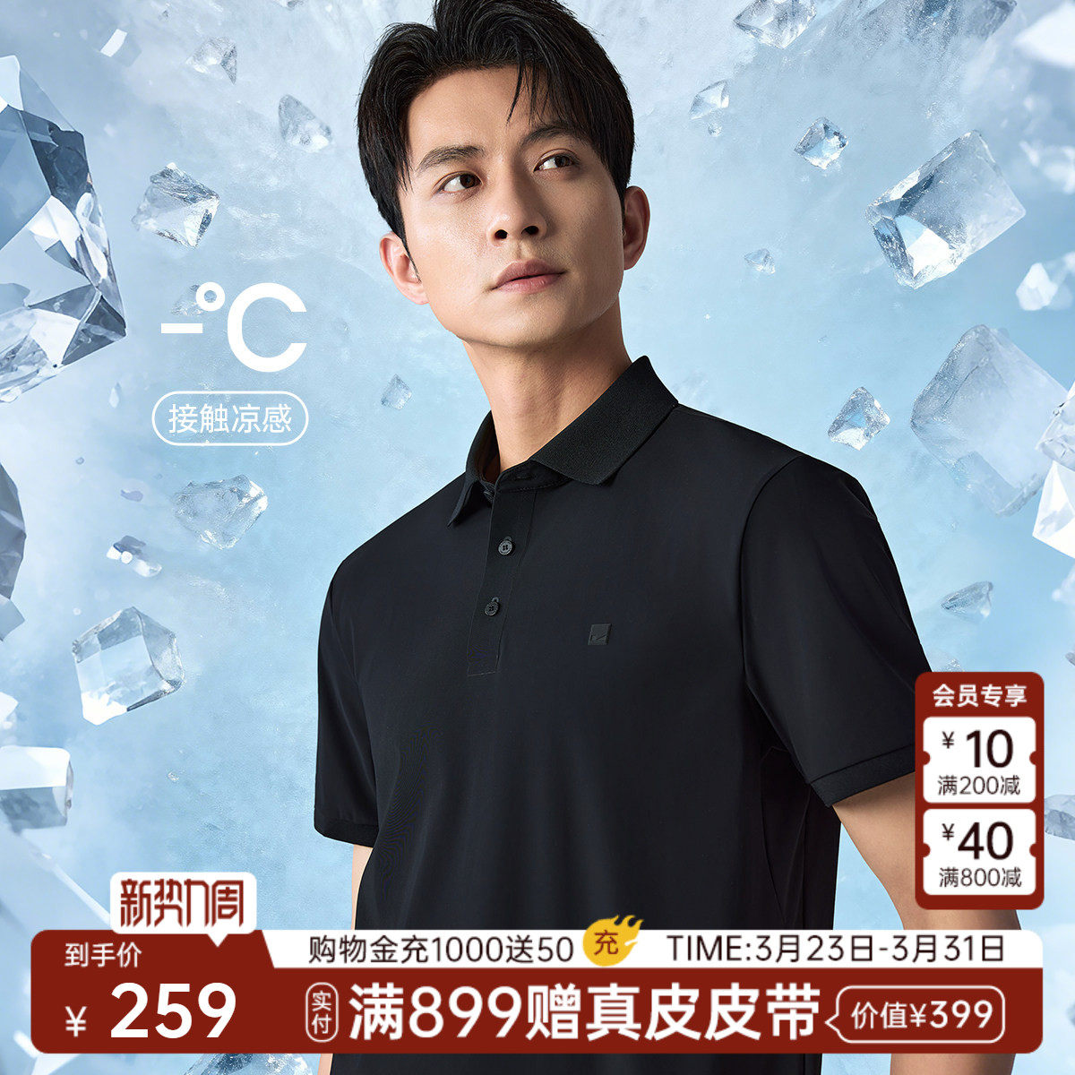 【凉感/抑菌/消臭】利郎官方 短袖polo衫男商务翻领2026夏弹力T恤