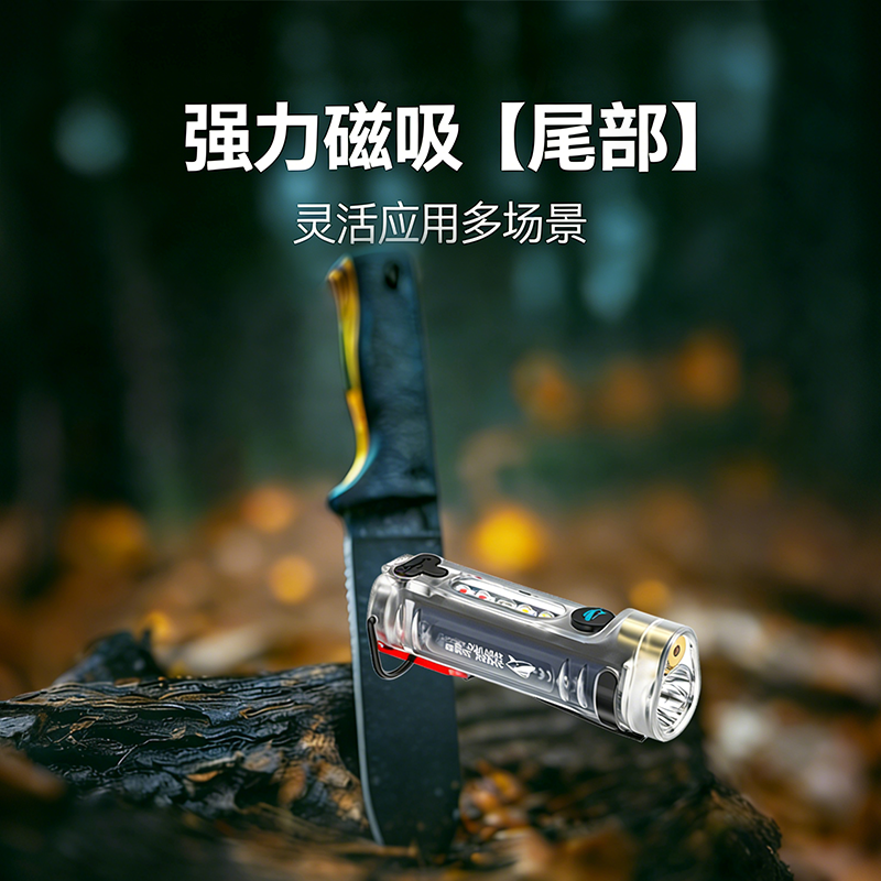 新款微笑鲨小型便携手电筒强光磁吸家用照明灯小随身钥匙扣led灯