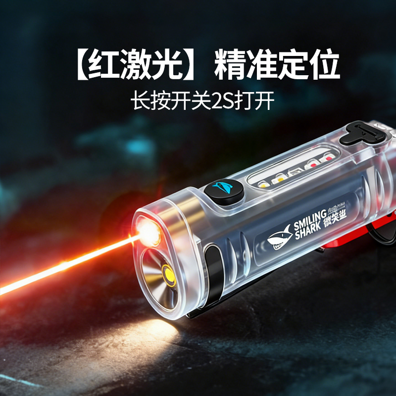 微笑鲨手电筒强光小型便携超亮长续航大容量远射充电式家用户外