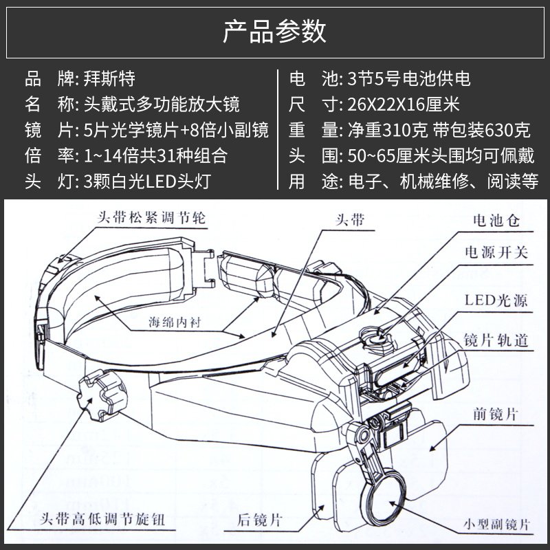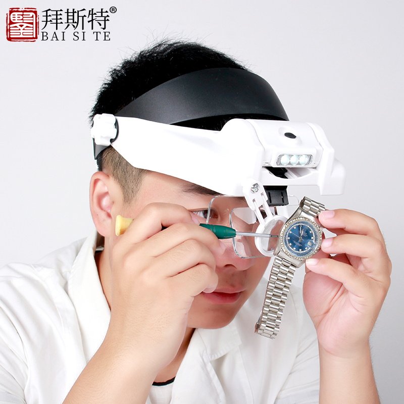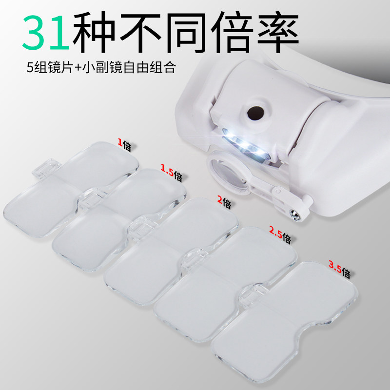 拜斯特头戴式放大镜带灯led14倍31种倍维修电子电路倍文玩珠宝钱