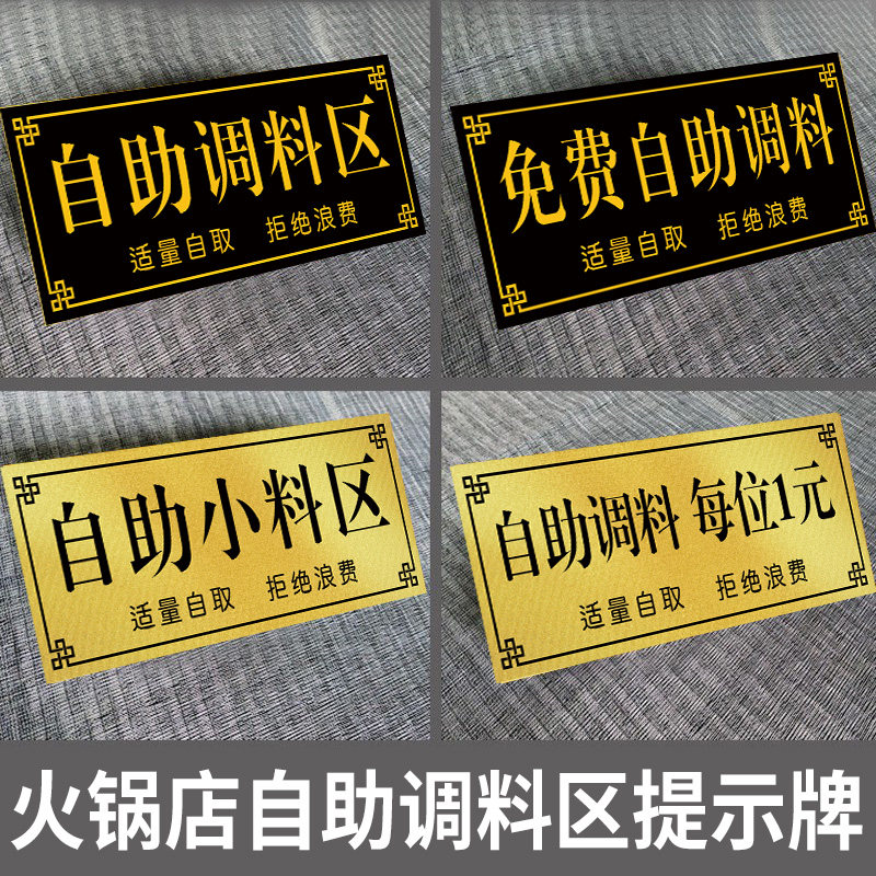 自助调料区指示牌自助小料台标识招财猫免费小菜提示牌出餐口贴纸
