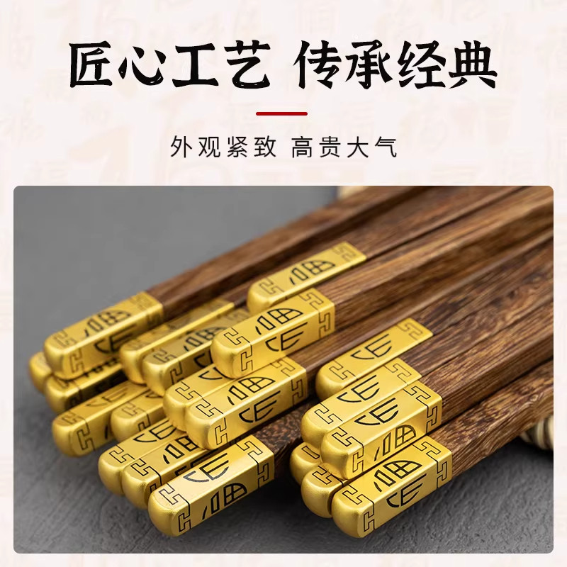 唐宗筷鸡翅木筷子家用新款无漆无蜡防霉抗菌中式实木筷可进洗碗机