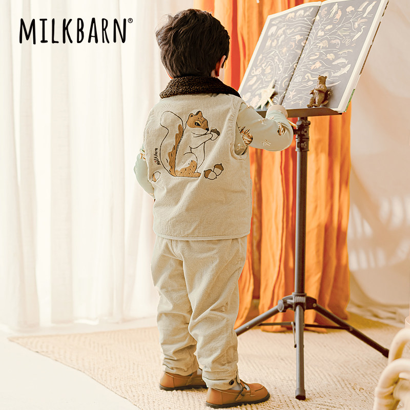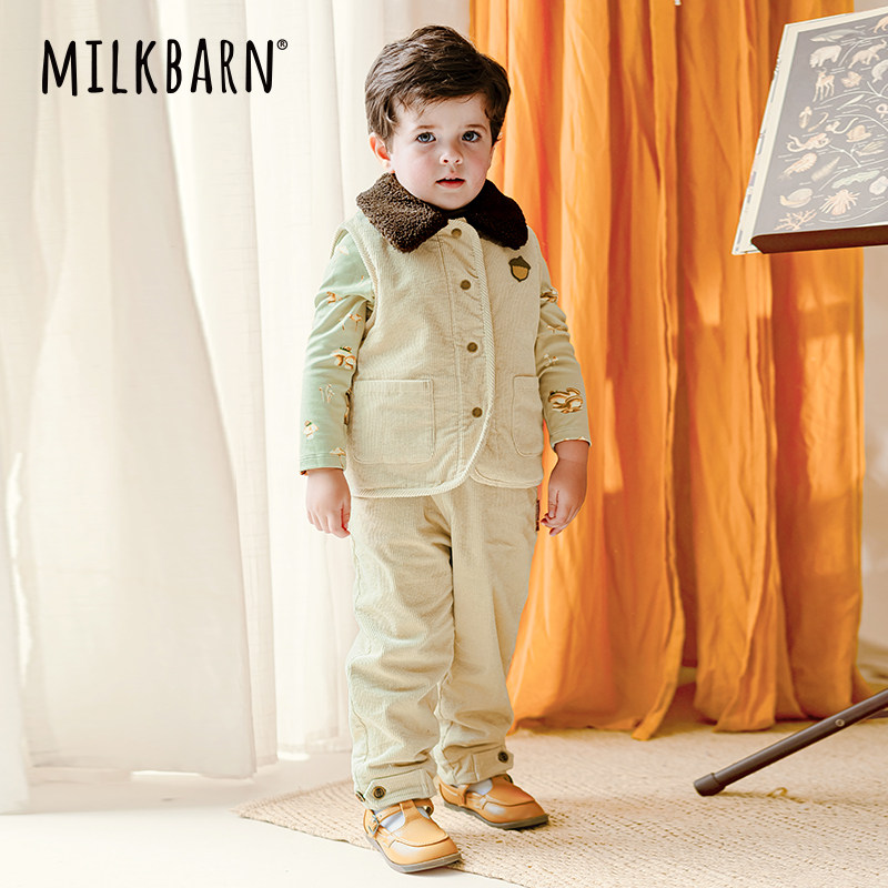 Milkbarn秋冬新品儿童棉袄马甲小宝宝外套男女童棉服棉裤套装