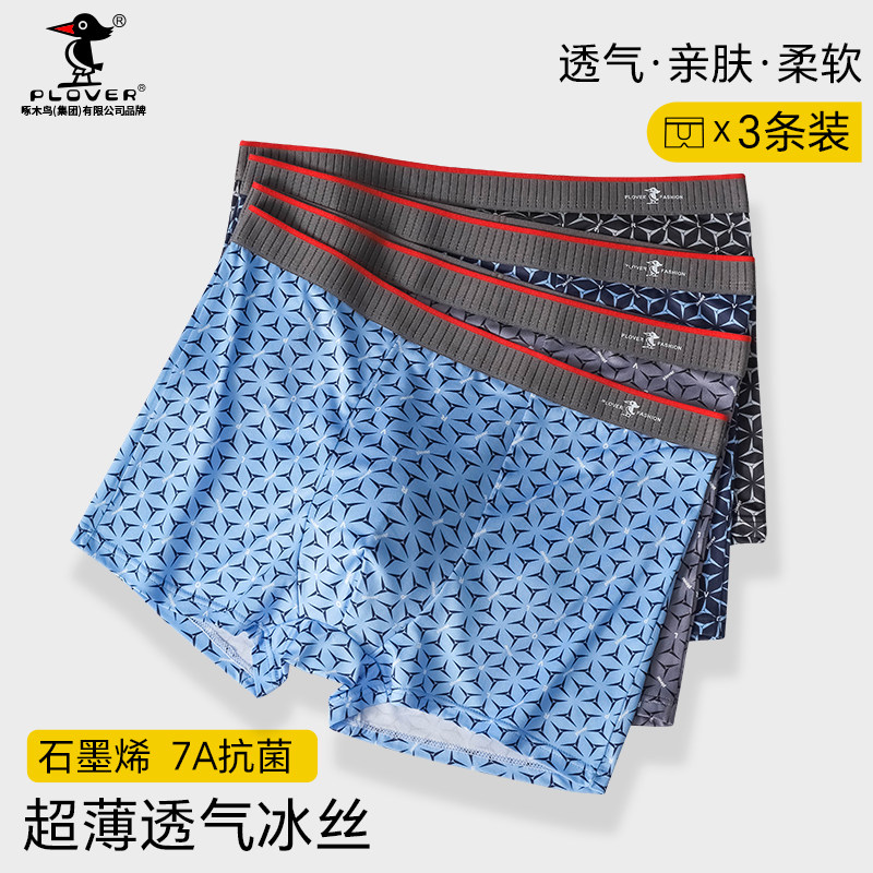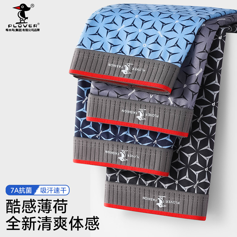 猫人冰丝抗菌裆男士内裤弹力四角裤运动薄款平角裤大码裤3条袋装
