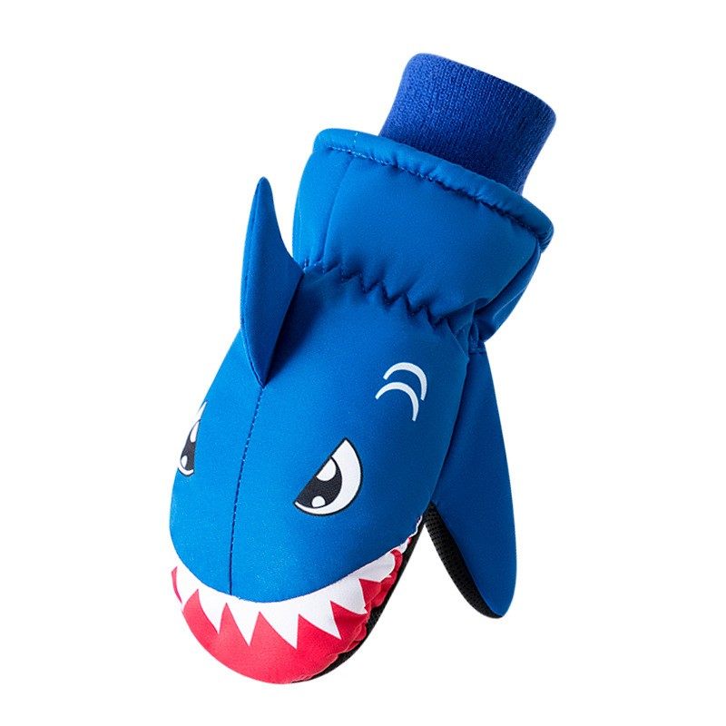 冬季儿童手套宝宝小孩连指闷子玩雪防水保暖加绒加厚卡通鲨鱼滑雪