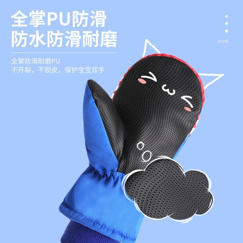 KK树儿童滑雪手套男童女孩冬季宝宝防水风保暖加绒冬天玩雪不分指