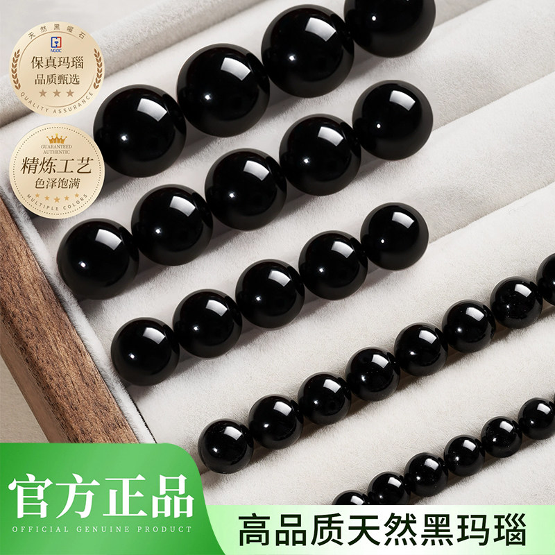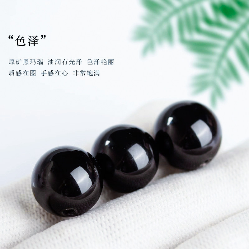 巴西天然黑玛瑙散珠手链DIY单珠子黑曜石配珠水晶手串女桶珠玉石