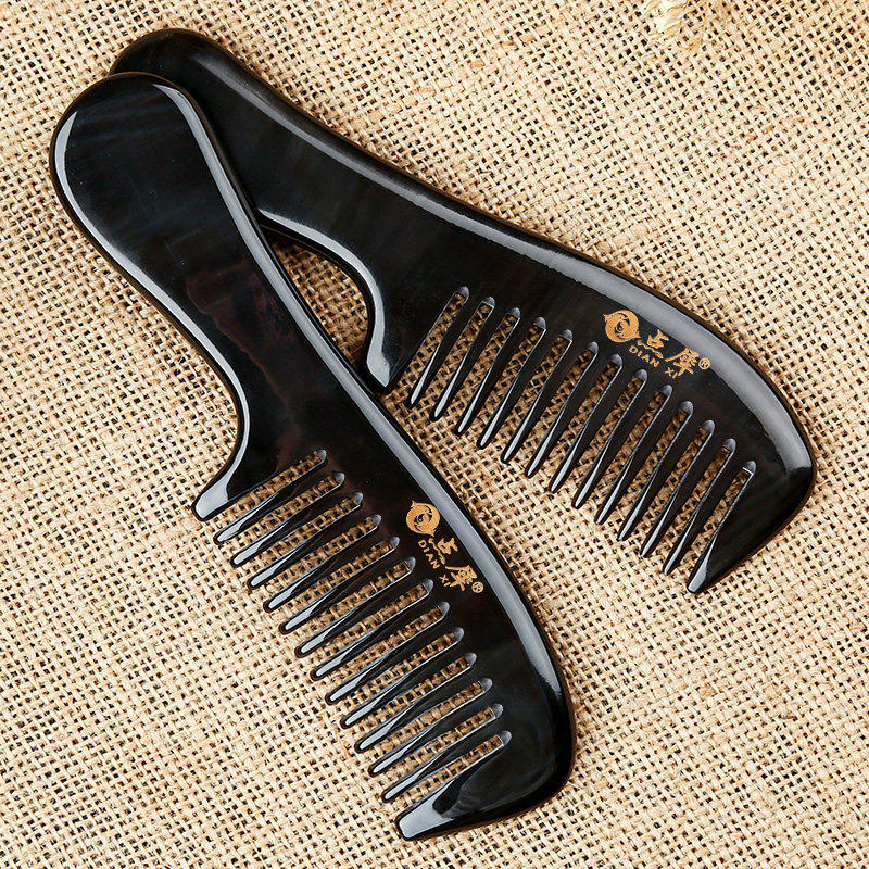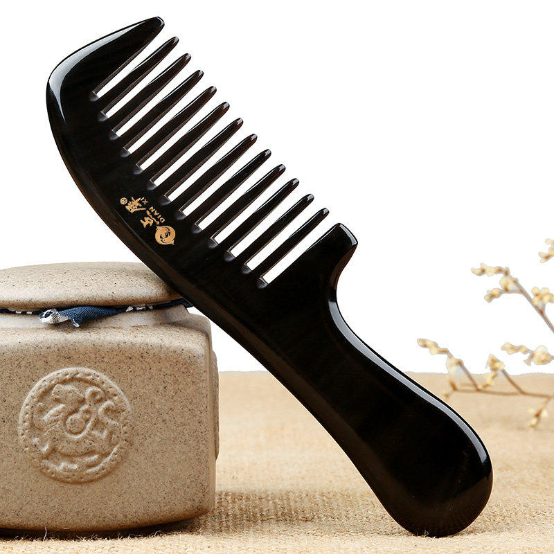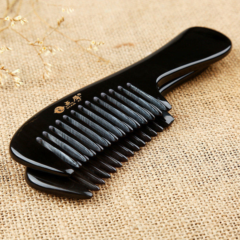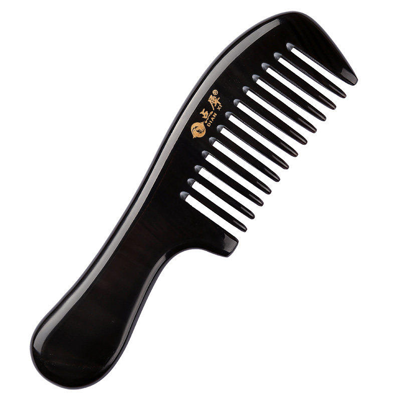 点犀正品天然水牛角梳子宽齿梳卷发梳按摩梳清洁护理头皮护发家用