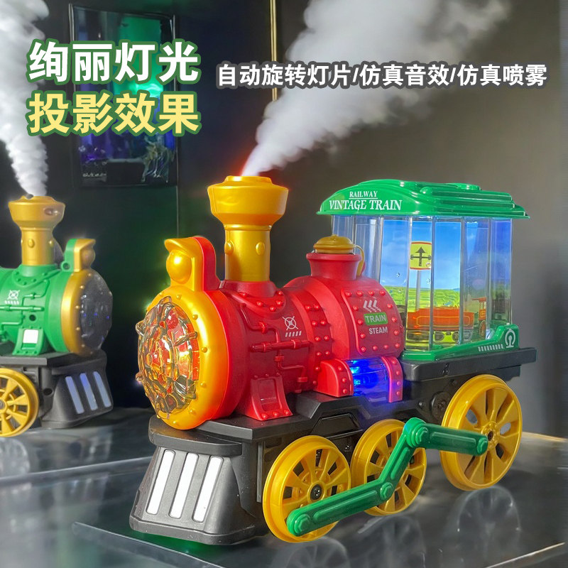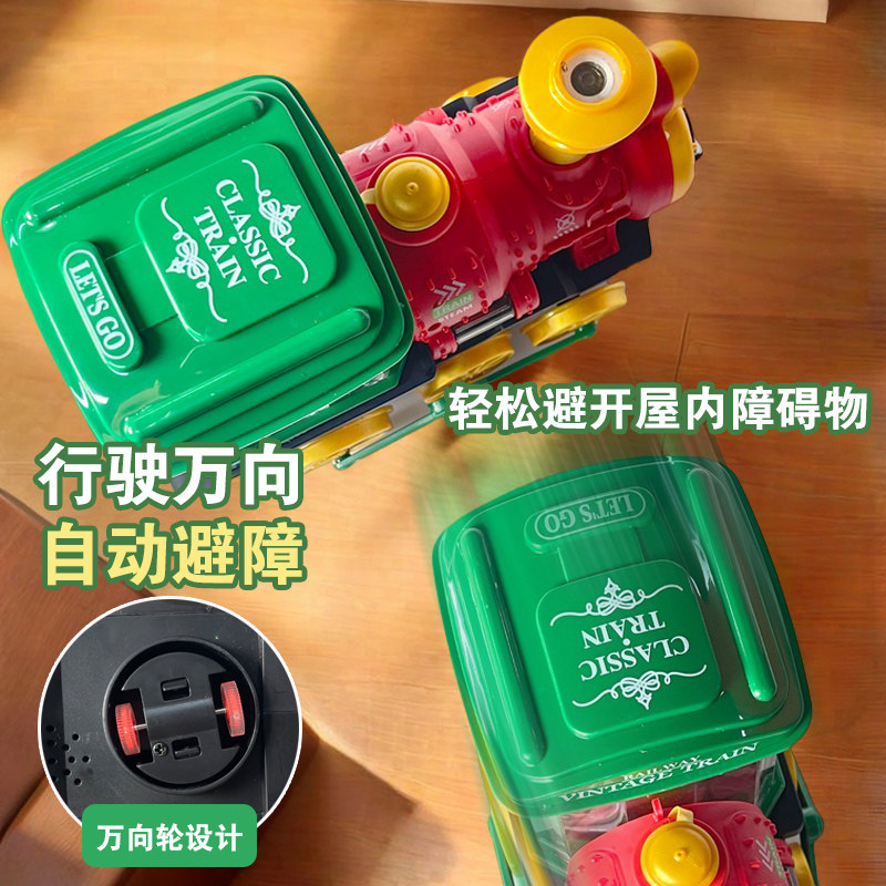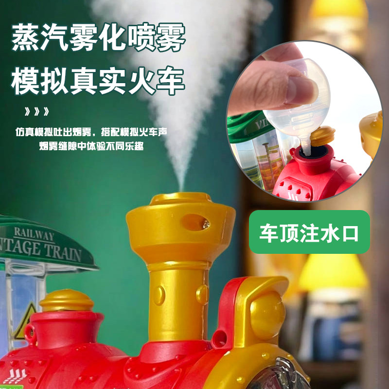 电动蒸汽小火车万向轮喷雾火车头模型儿童男孩玩具车碰碰车1一3岁