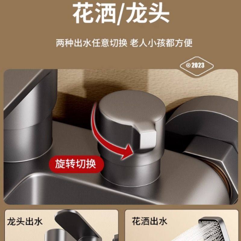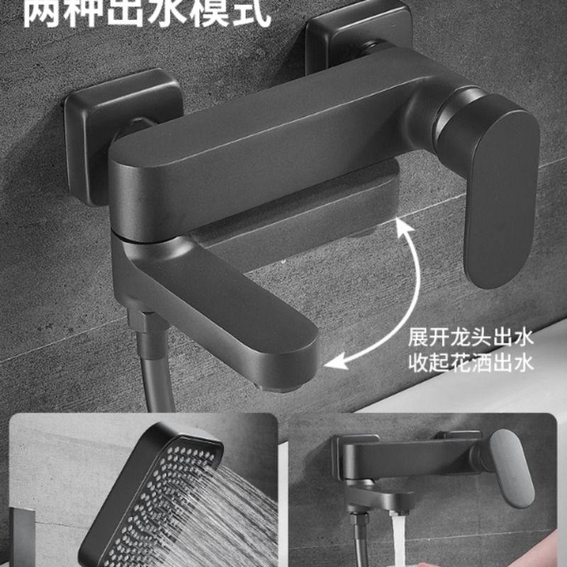 枪灰色全铜淋浴花洒套装卫生间浴室沐浴极简简易无顶喷花洒家用