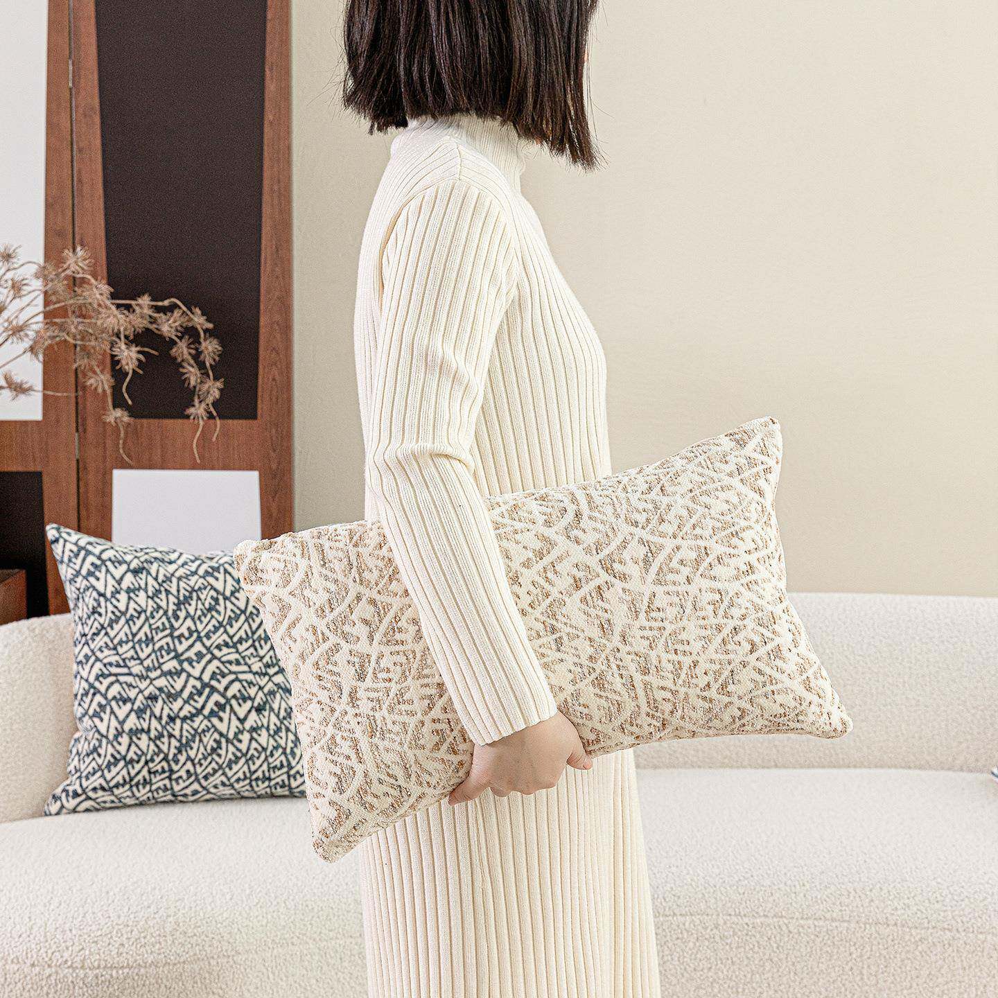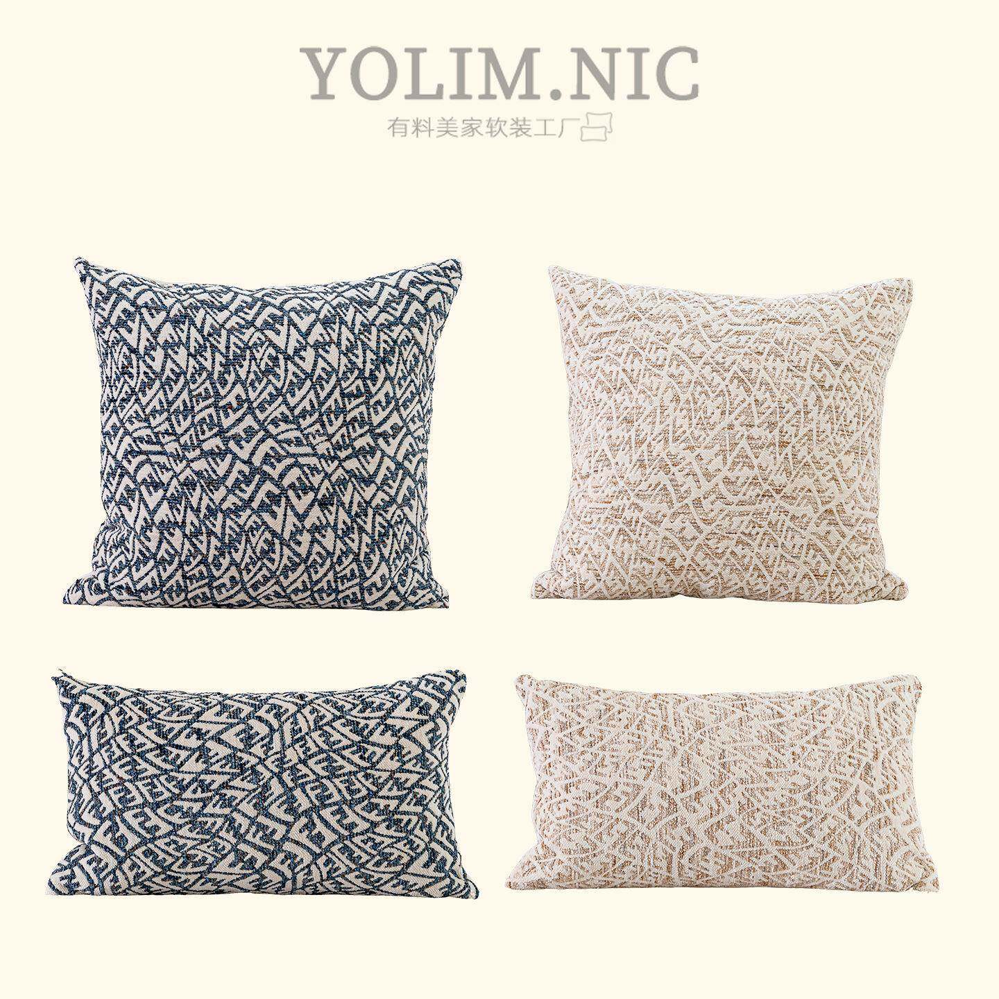 高端雪尼尔提花沙发抱枕抽象几何图案中古风客厅卧室软装装饰靠垫