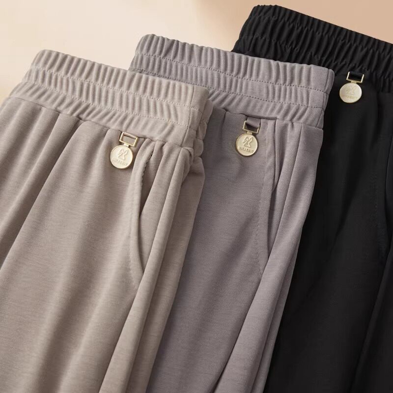 雅鹿妈妈阔腿裤女夏季薄款2026新款九分裤冰丝直筒休闲中老年黑色