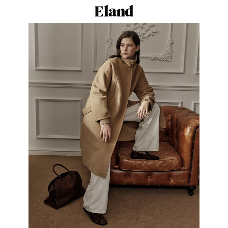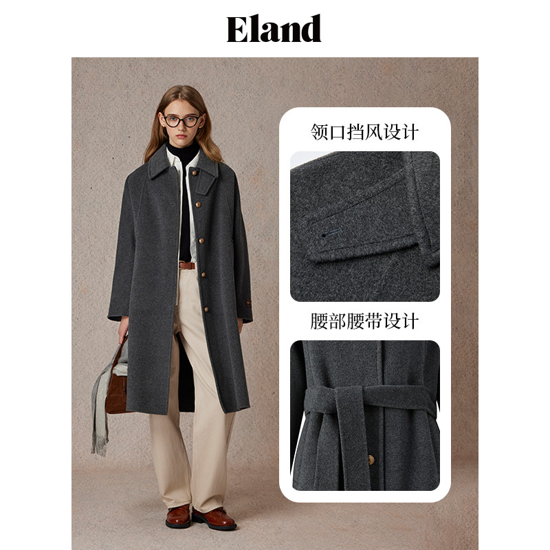 【绵羊毛+山羊绒】Eland衣恋毛呢外套女长大衣冬季款