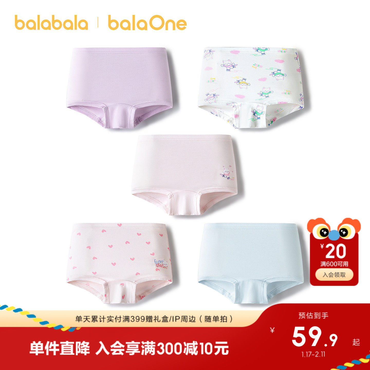 巴拉巴拉儿童内裤棉a类男童平角短裤小童中大童女童四角裤五条装