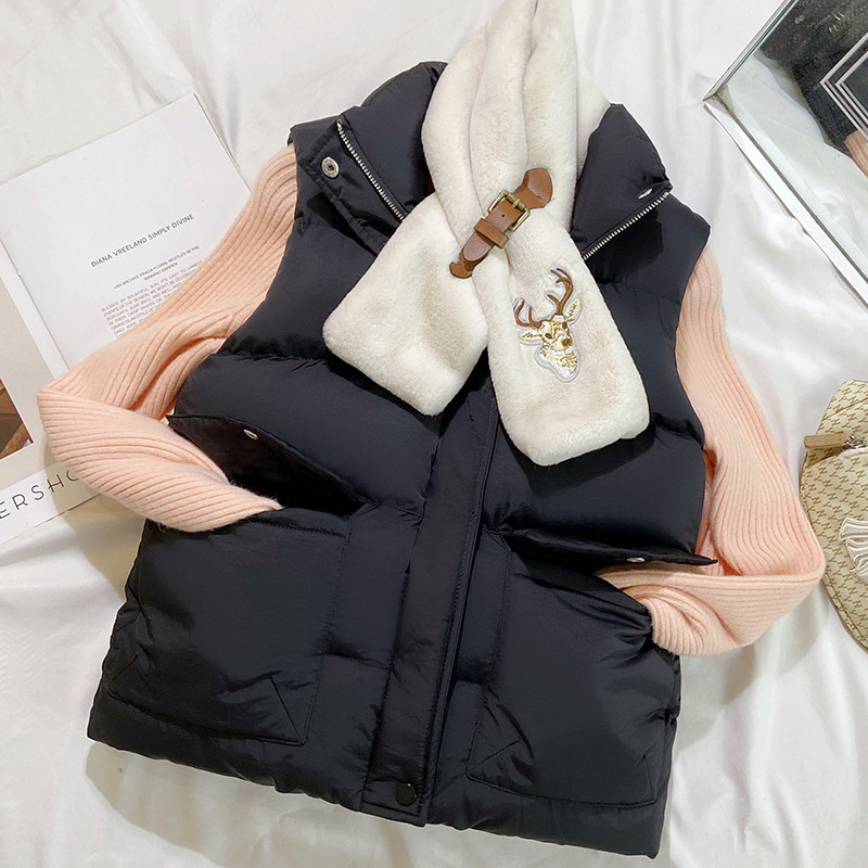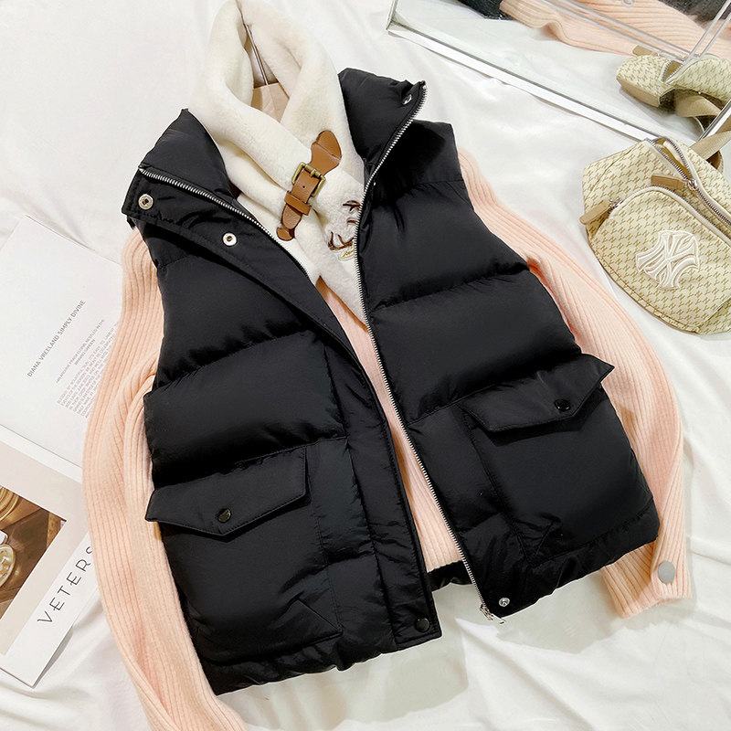 运动马甲女短款羽绒棉2025秋冬加厚马夹面包服外套潮加绒防风黑色