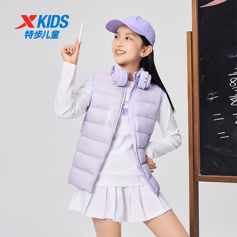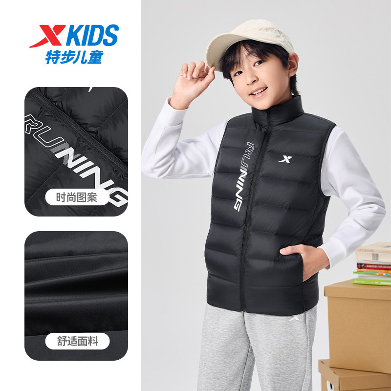 特步童装儿童秋季新款男童女童休闲保暖羽绒马甲小中大童运动马甲