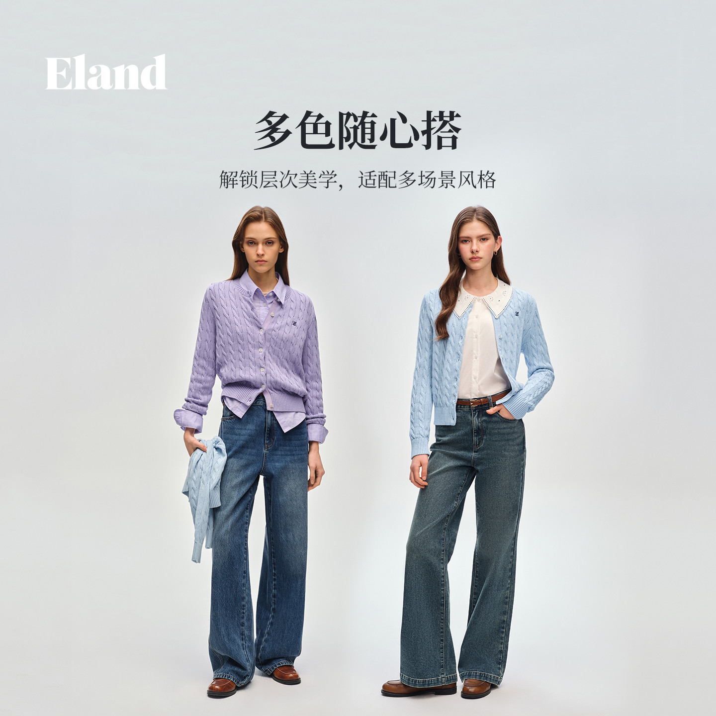 【轻彩棉花糖】Eland衣恋毛针织衫女绞花开衫马卡龙毛衣26春新款