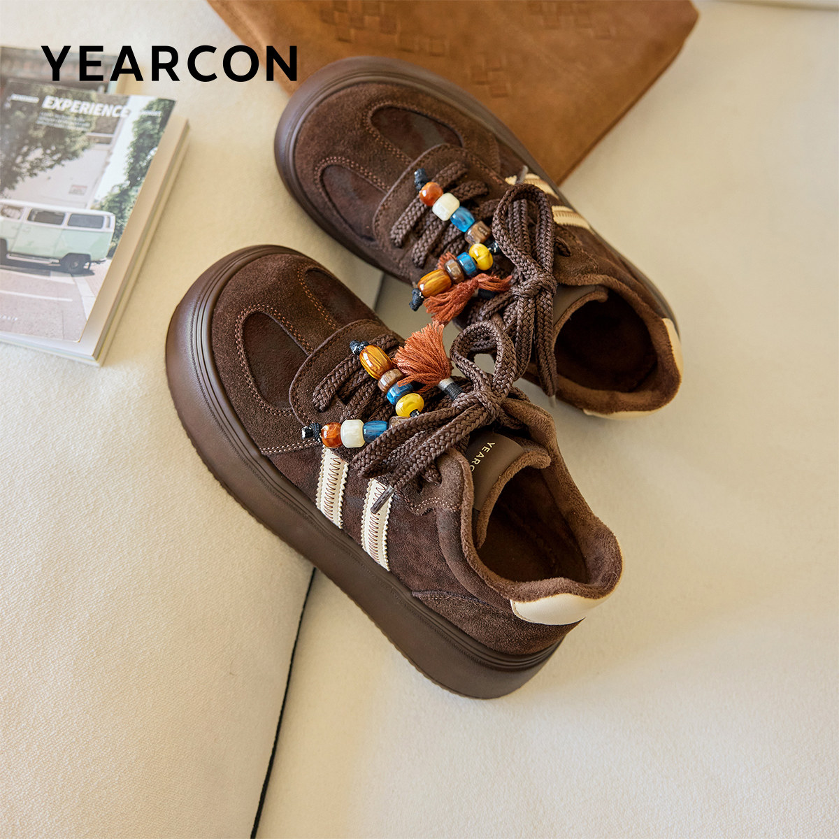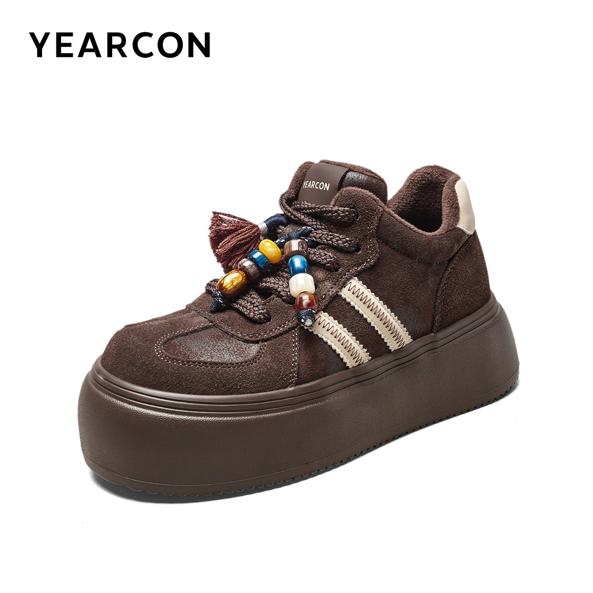 Chio2nd南风 4cm增高磨砂牛皮德训鞋子女款秋冬复古休闲鞋运动鞋