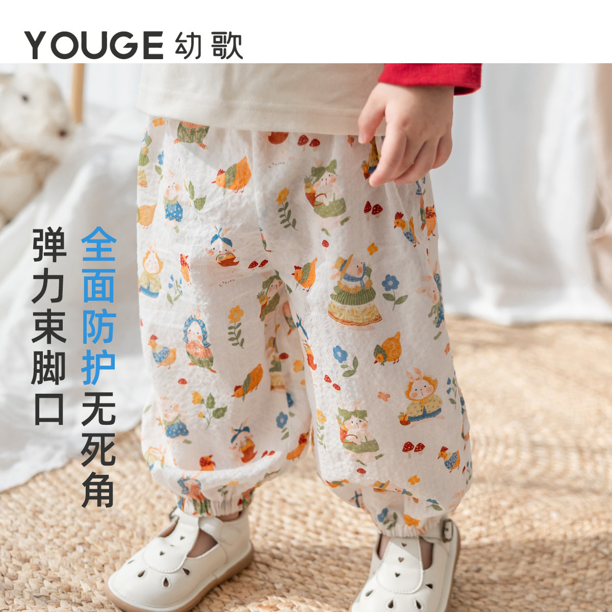 YOUGE幼歌 儿童2025新款轻柔束脚防蚊裤宽松柔软亲肤透气松紧裤子