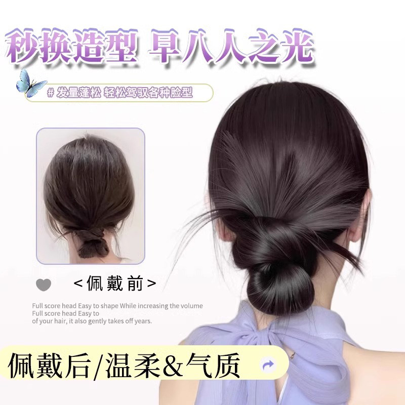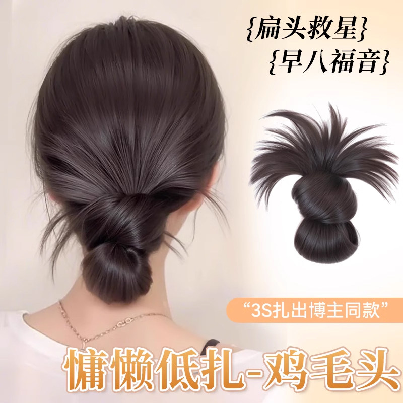 低扎丸子头假发鸡毛头抓夹盘发发包慵懒感造型头饰自然蓬松后脑勺