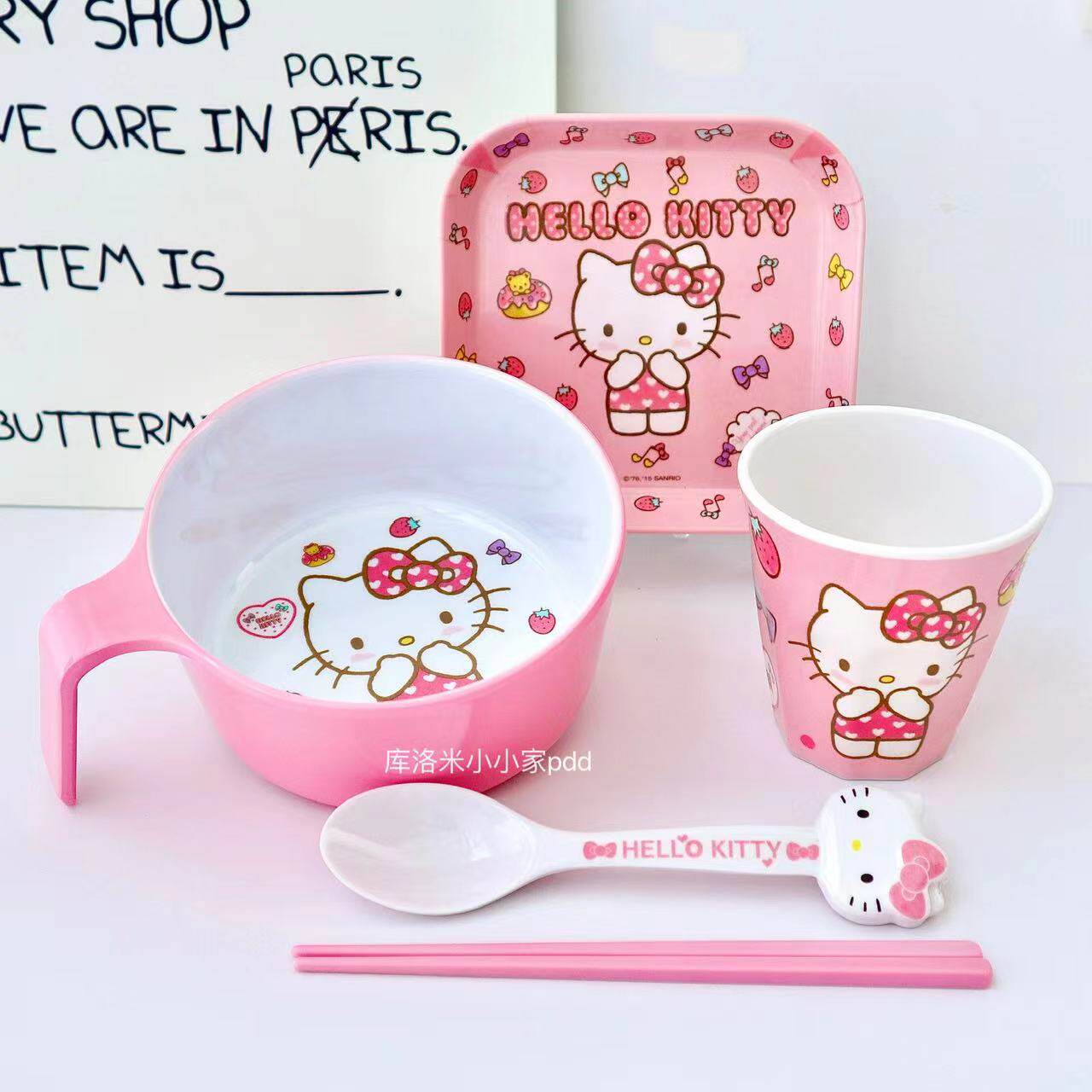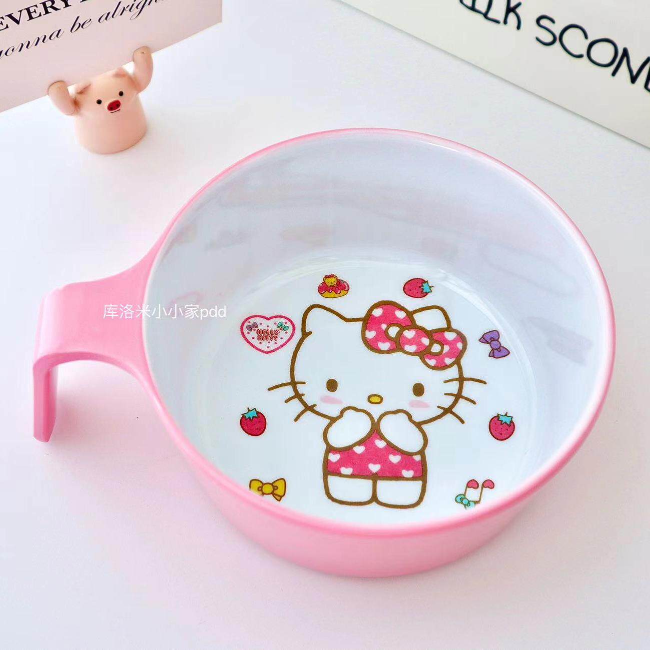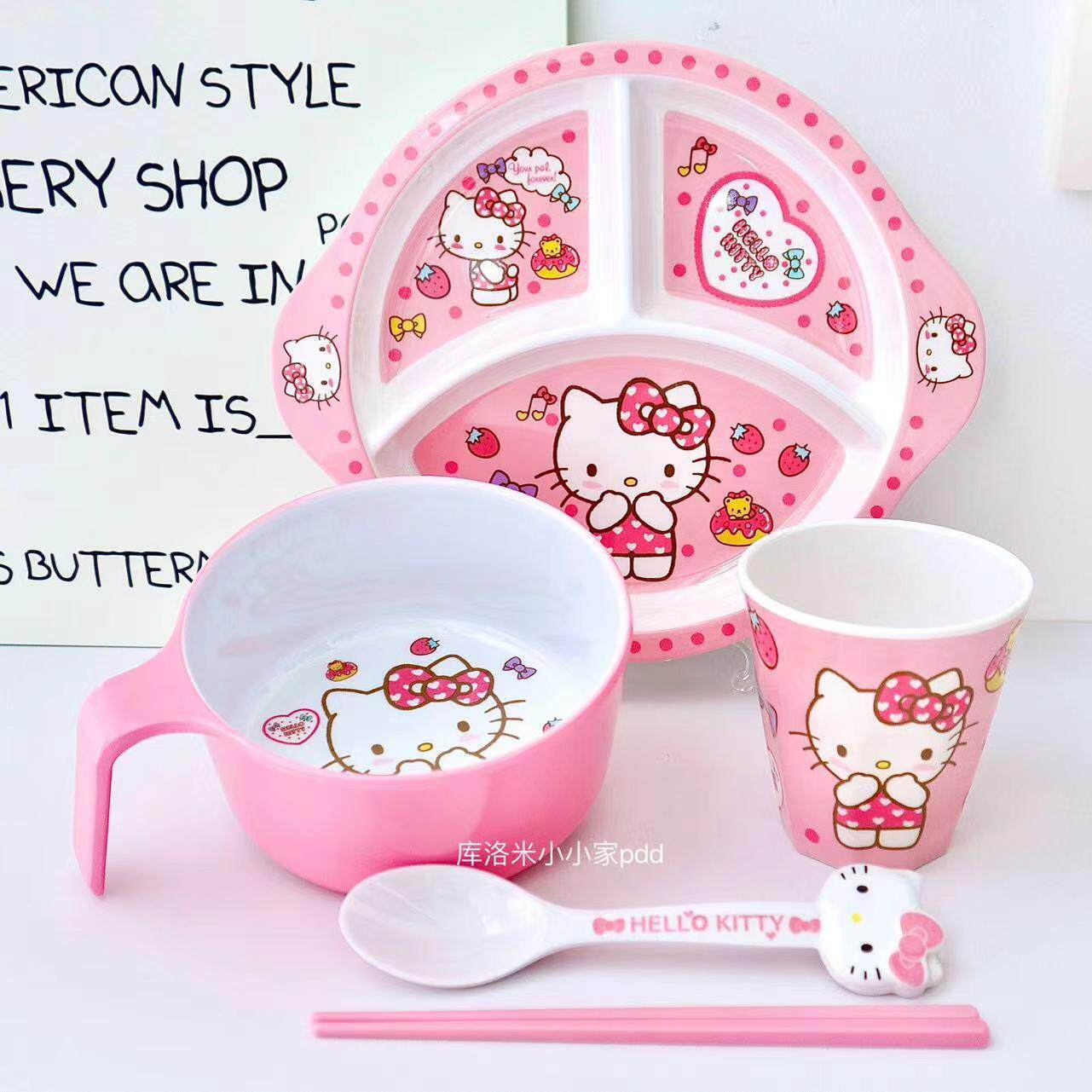 新款kt猫儿童把手碗卡通家用餐具防烫食品级餐盘吃饭专用学生防摔