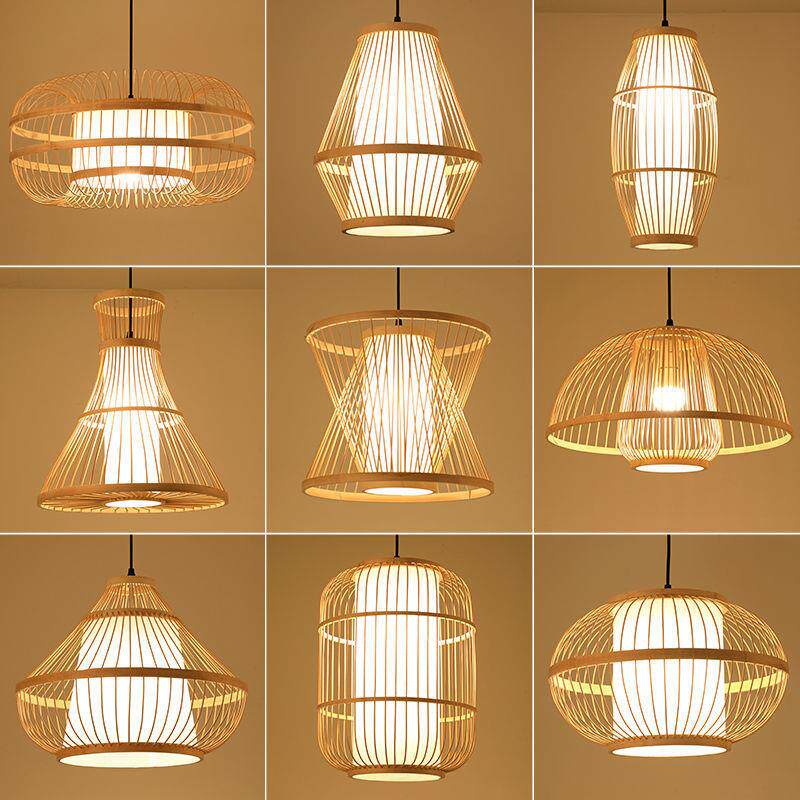 灯笼竹艺吊灯吧台民宿茶室火锅店饭店简约日式餐厅竹编餐饮店灯具