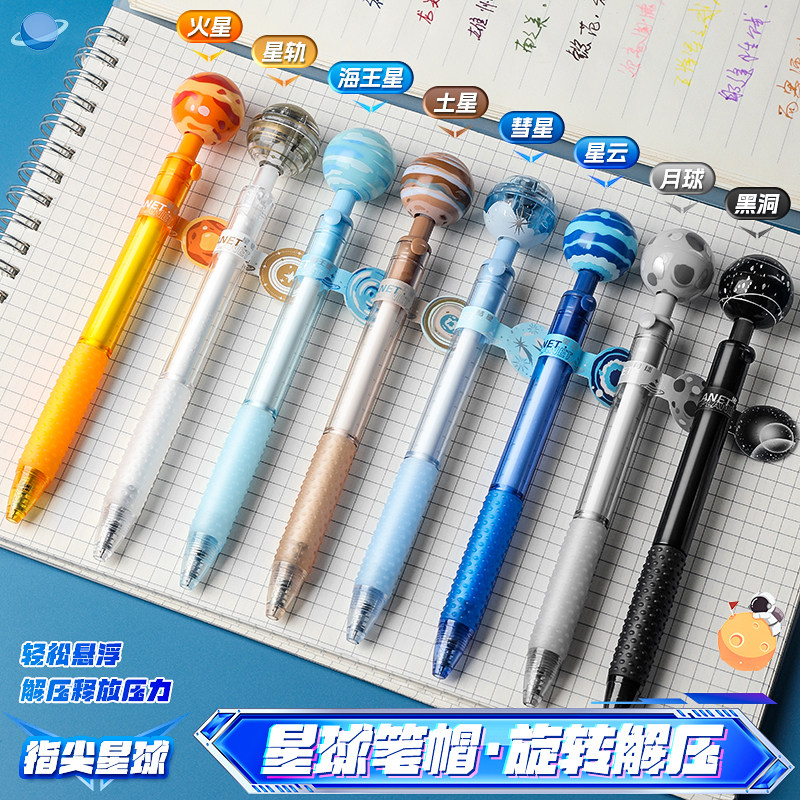 旋转星球笔按动中性笔ST头刷题笔速干顺滑黑笔小学生黑科技悬浮黑色水笔减压初中生解压笔圆珠芯签字创意文具