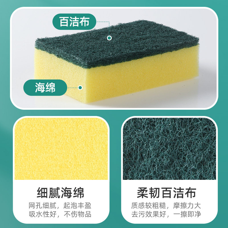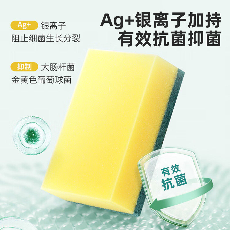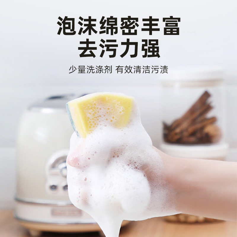 美丽雅百洁布厨房专用家用洗碗海绵擦不易粘油清洁刷锅海绵块双面