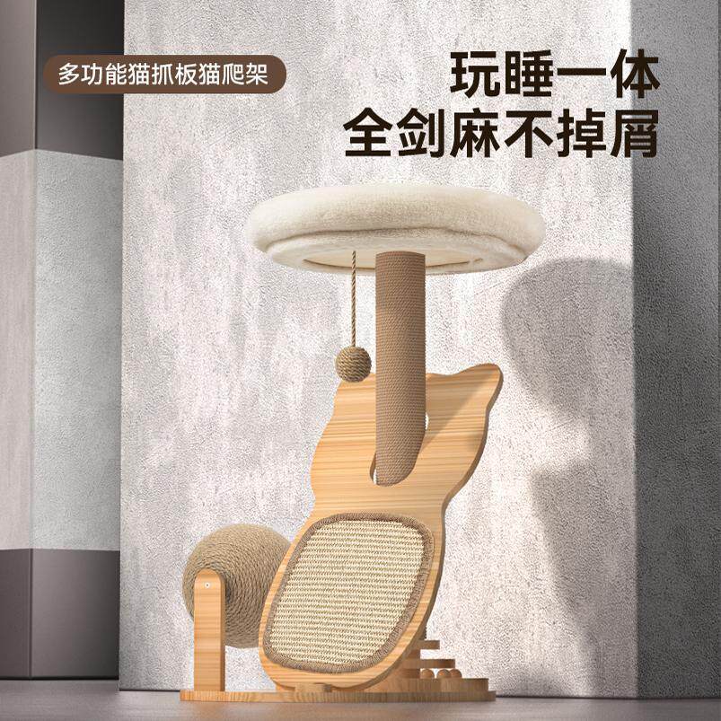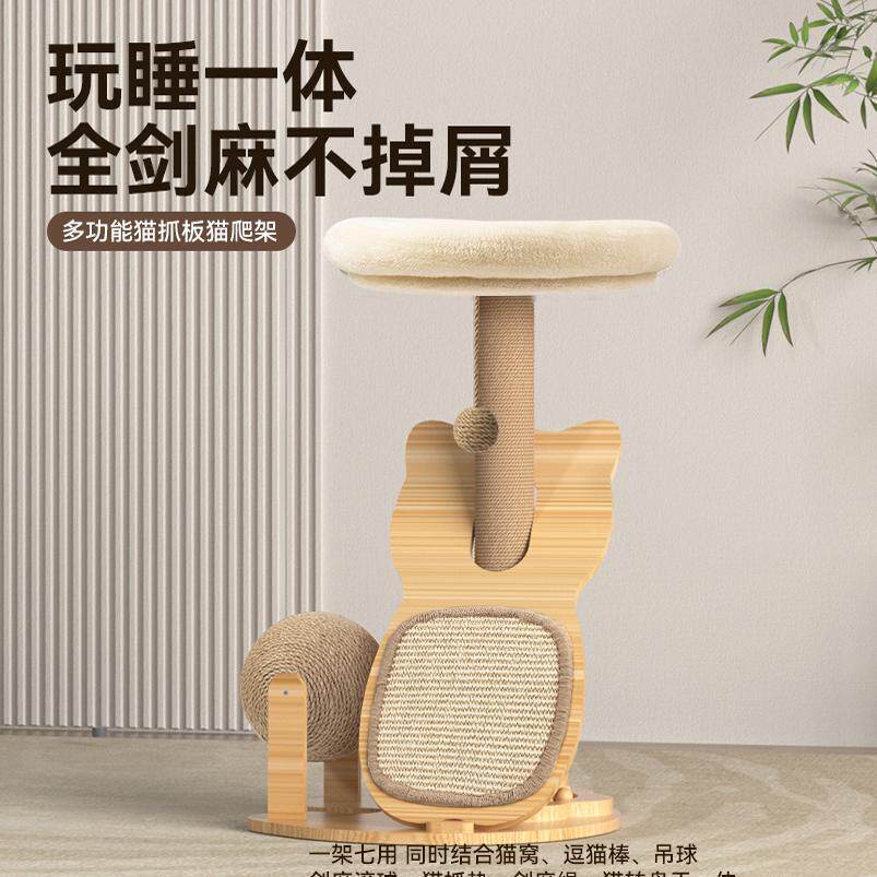 猫爬架家用剑麻猫抓板不占地小型玩具逗猫棒幼猫窝实木猫转盘套装