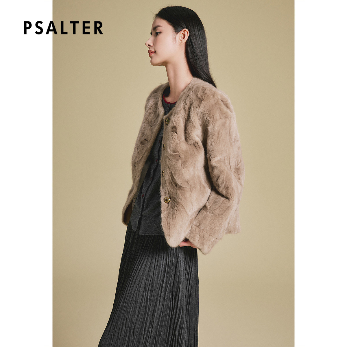 诗篇专选圆领保暖桑蚕丝填充内胆皮草水貂外套2025新款
