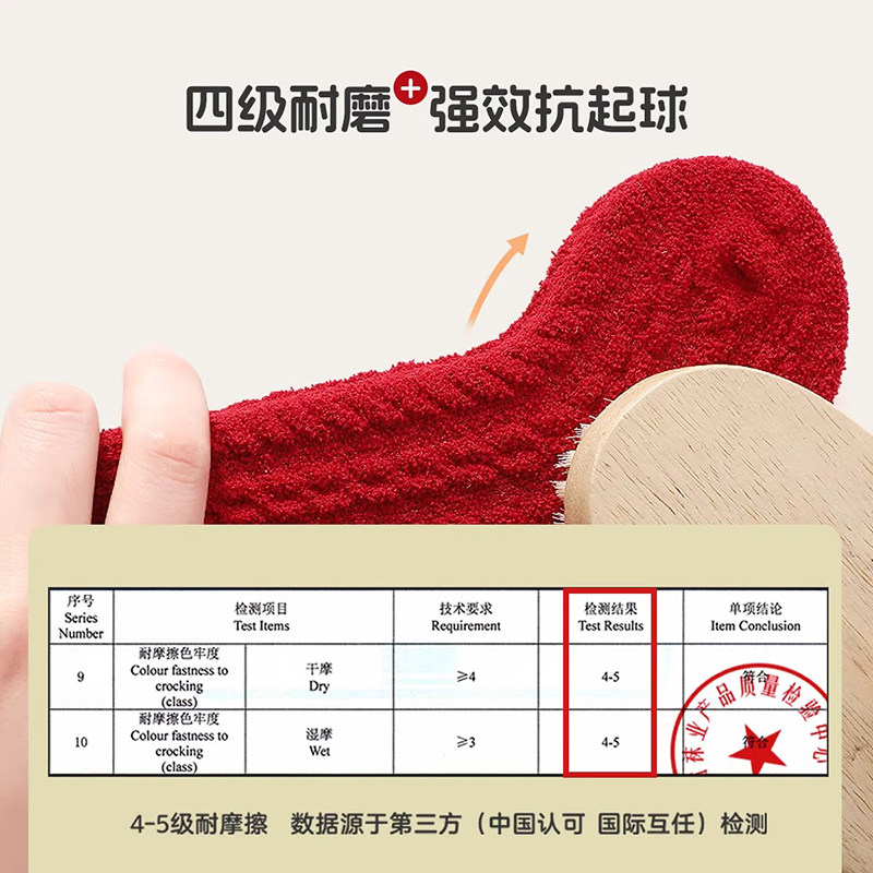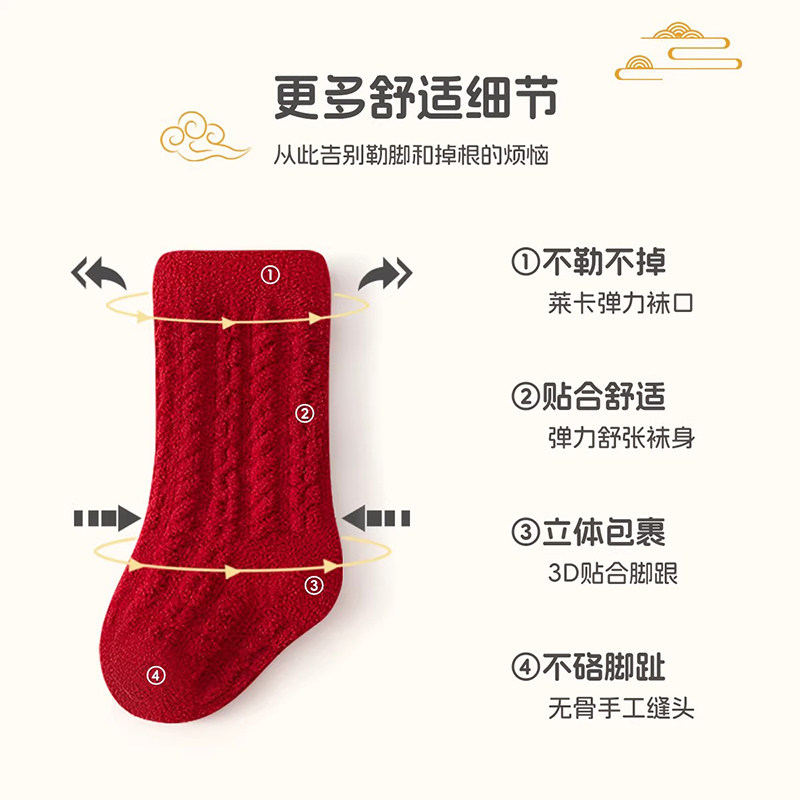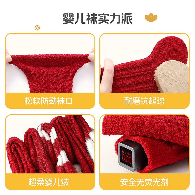 红色婴儿袜子秋冬季加厚珊瑚绒幼儿宝宝过新年长筒袜周岁马年中筒