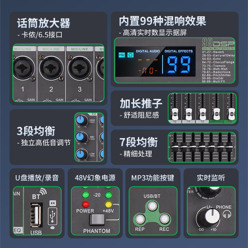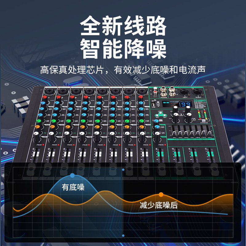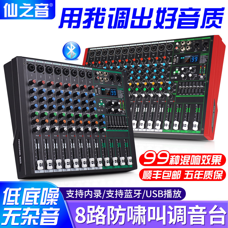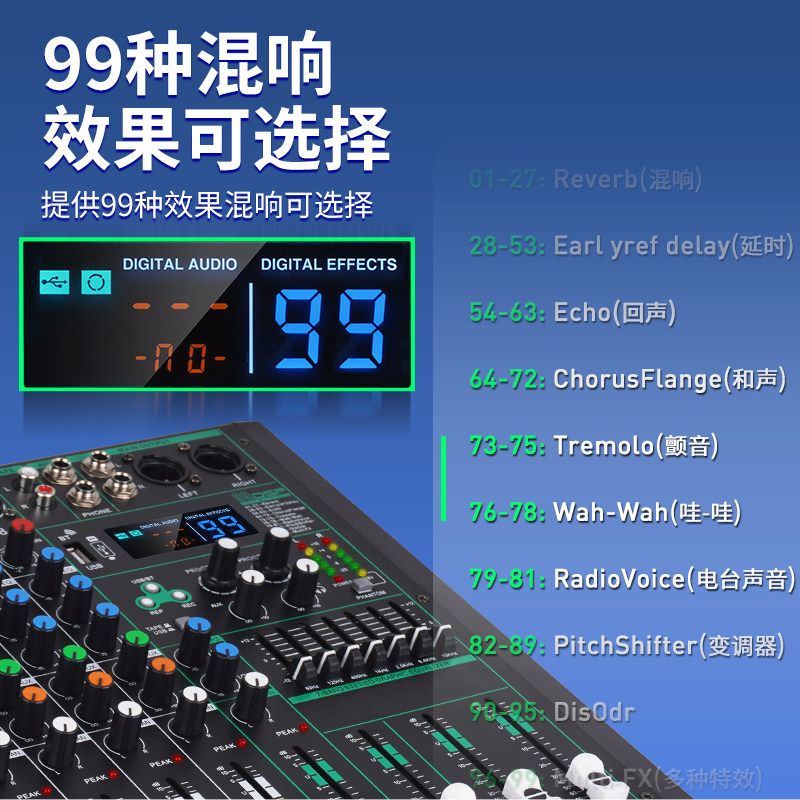 专业8路调音台小型99种数字混响效果器KTV家庭会议演出录音混音台