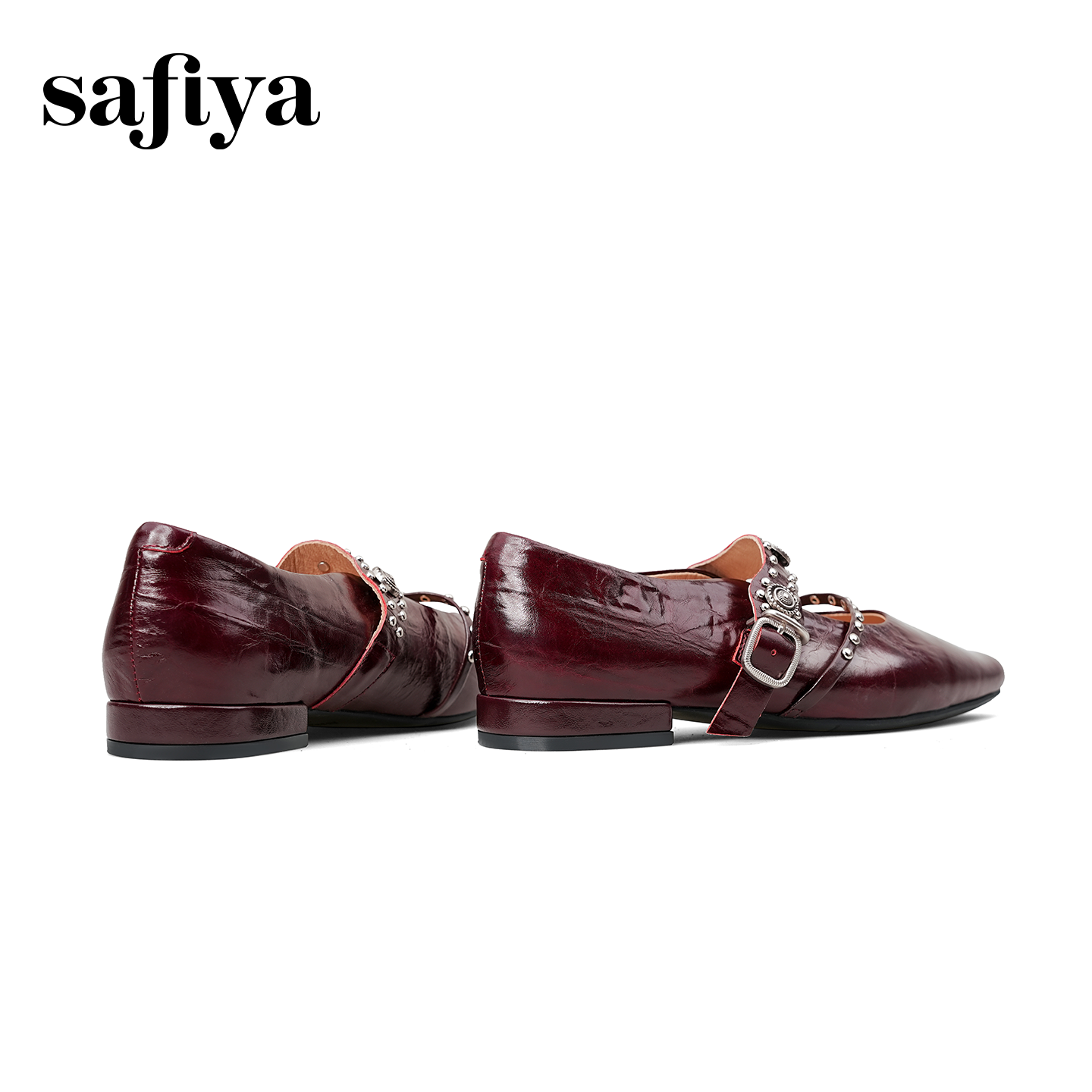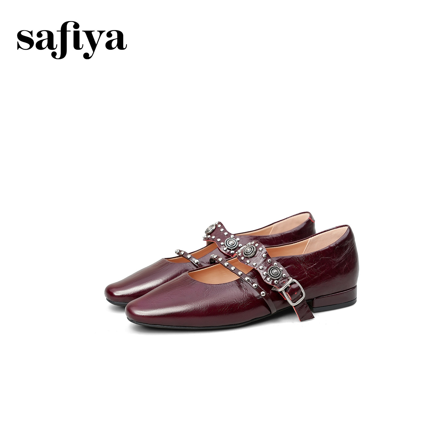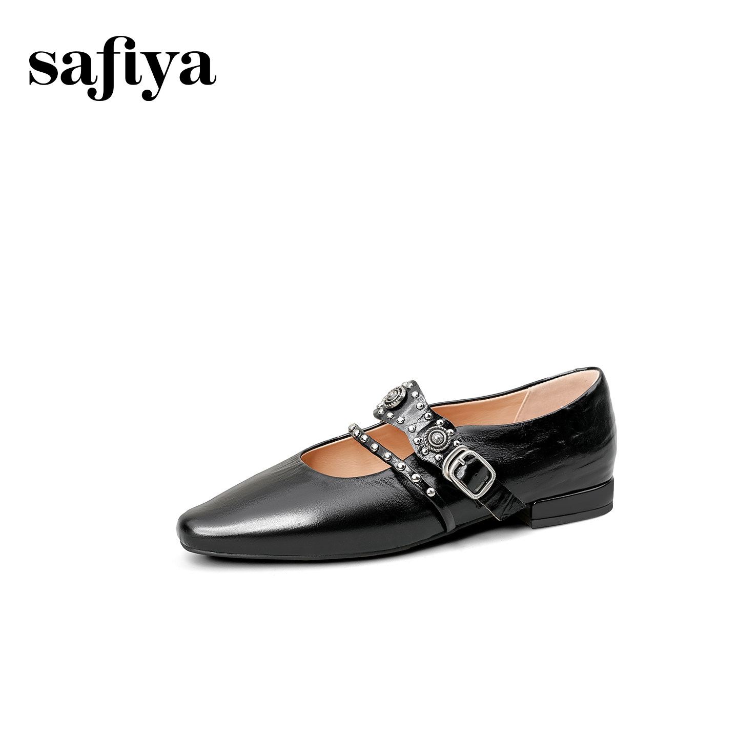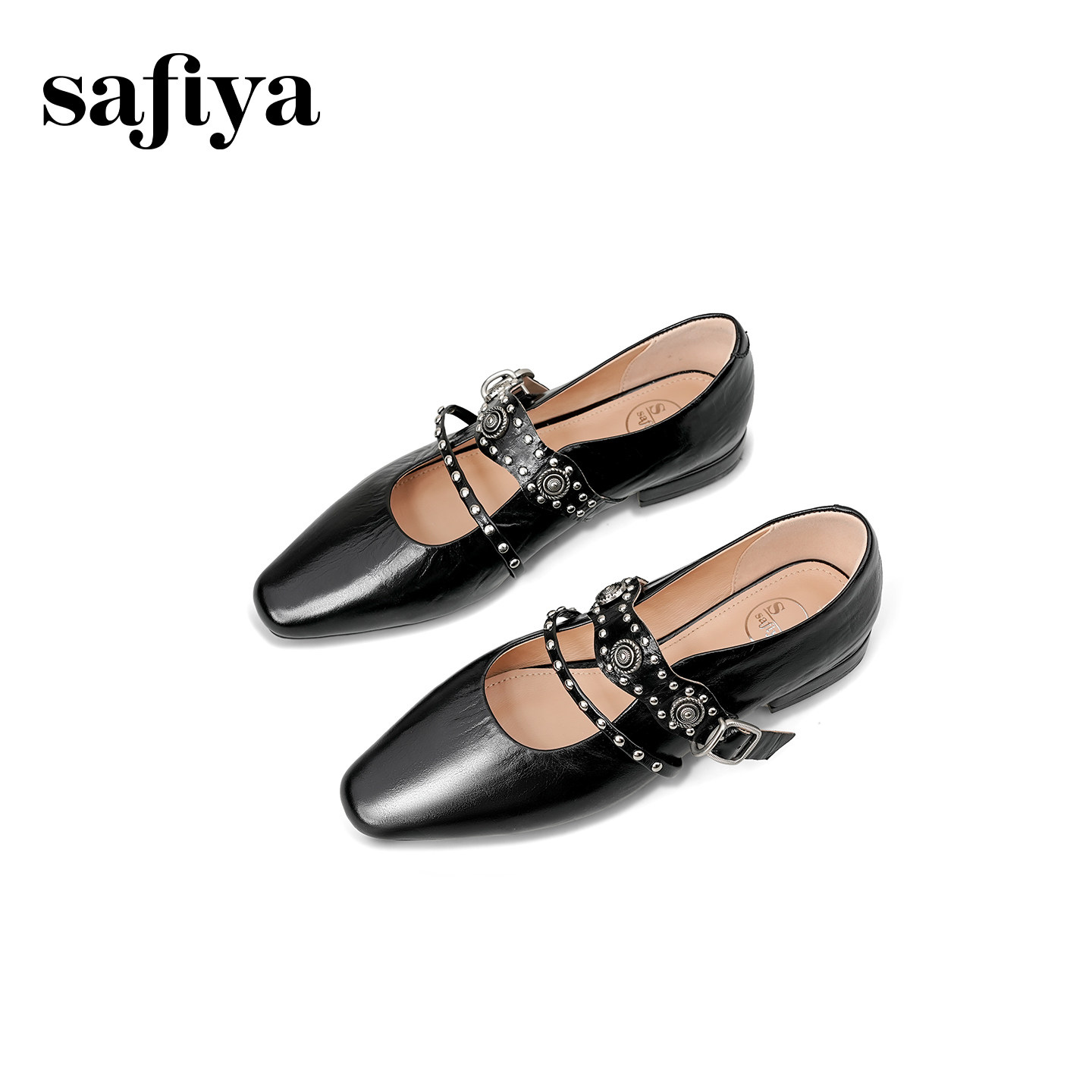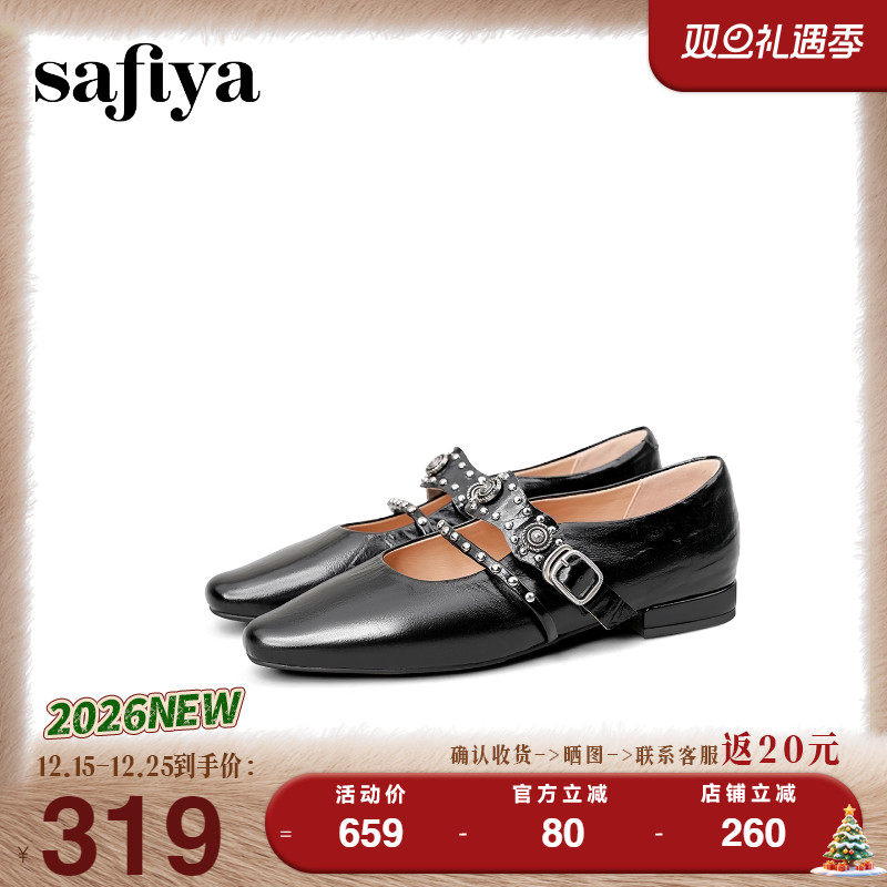 索菲娅2026春季新品法式真皮方头铆钉百搭浅口复古玛丽珍单鞋女