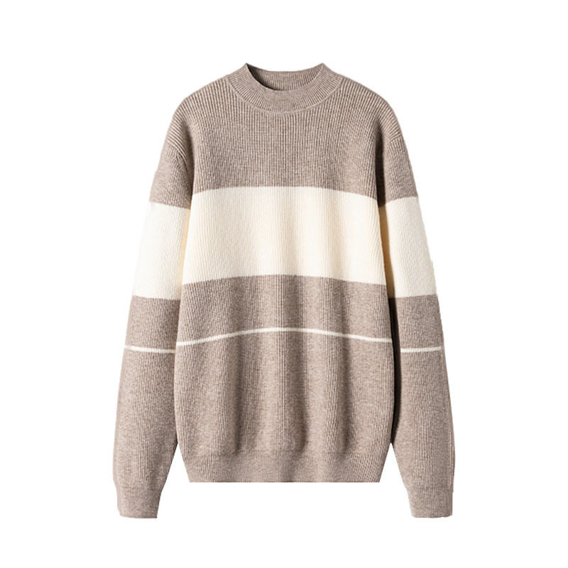 撤标男装正品尾货奢华大牌拼色上衣2023年新款圆领套头针织衫毛衣