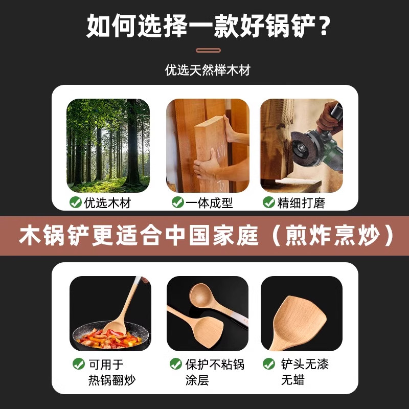 锅铲家用木铲子不粘锅专用榉木质炒菜铲子厨具实木头木制长柄实用