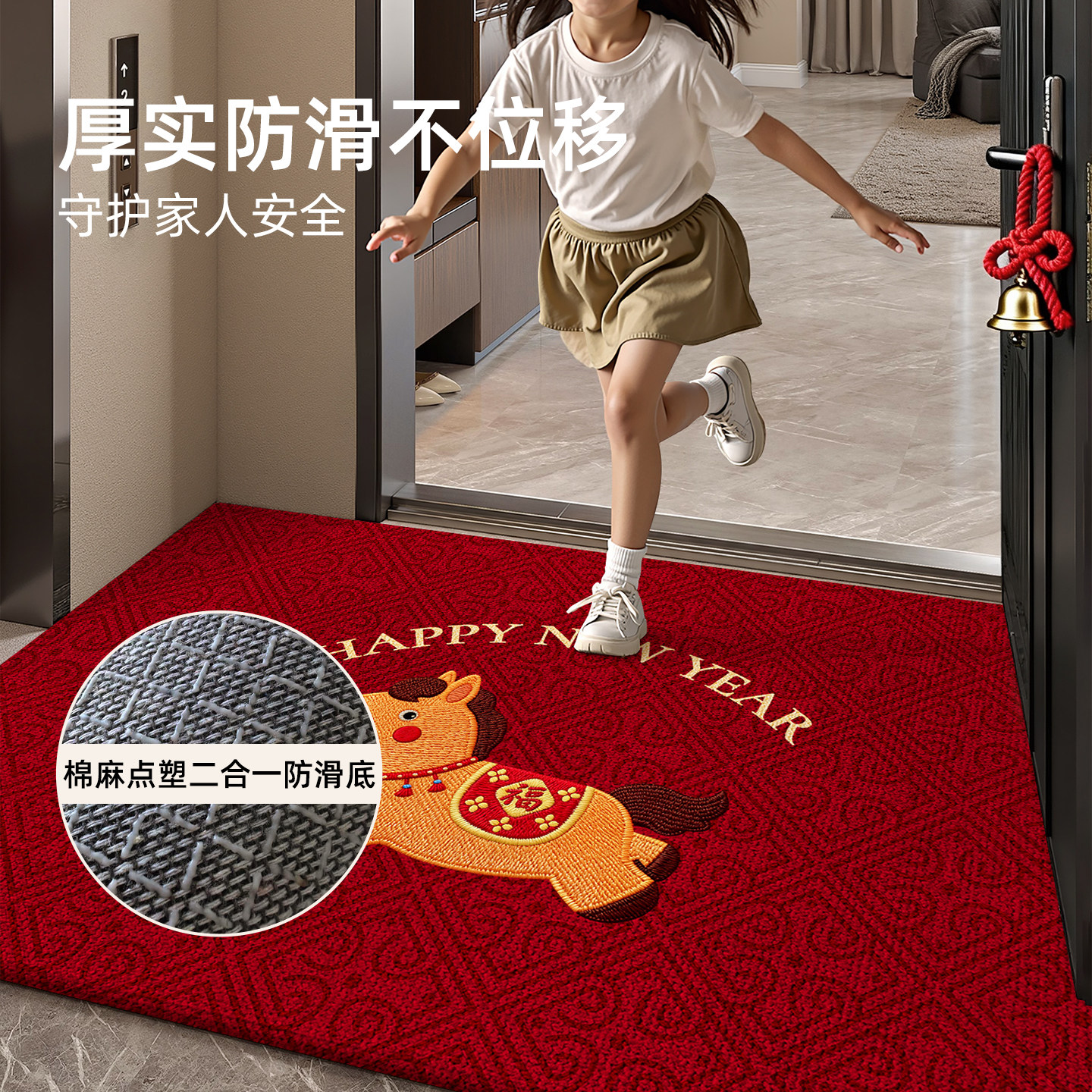 入户门地垫2026新款马年红色进门垫大门口地毯专用脚踏垫家用耐脏