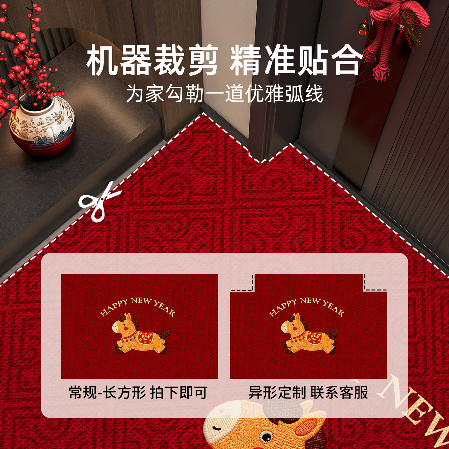 马年红色入户门地垫防滑脚垫玄关家用地毯可裁剪新年室外客厅免洗