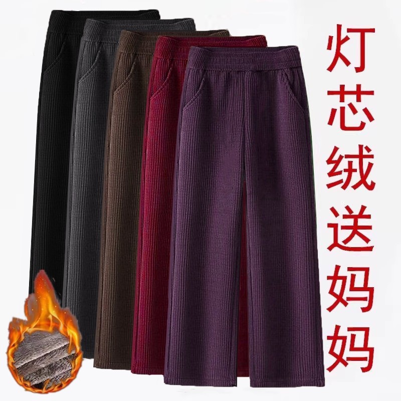 直筒灯芯绒裤子女款高腰显瘦秋冬新款加绒中年妈妈保暖加厚阔腿裤