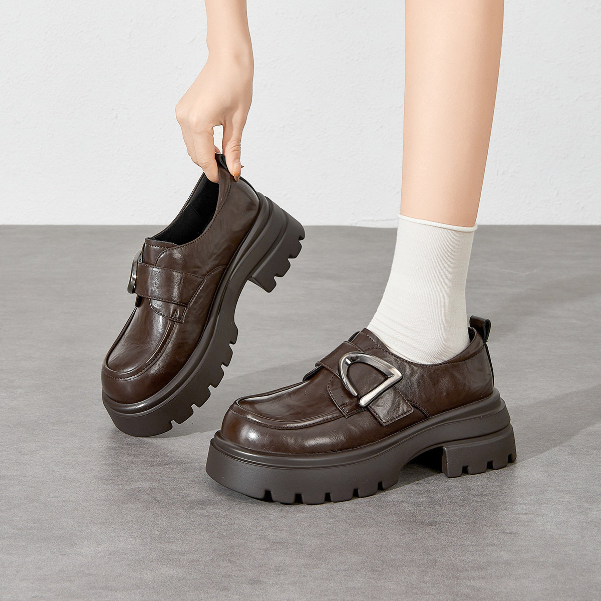 欧货真皮厚底小皮鞋女英伦风圆头加绒德比鞋小个子增高乐福鞋单鞋