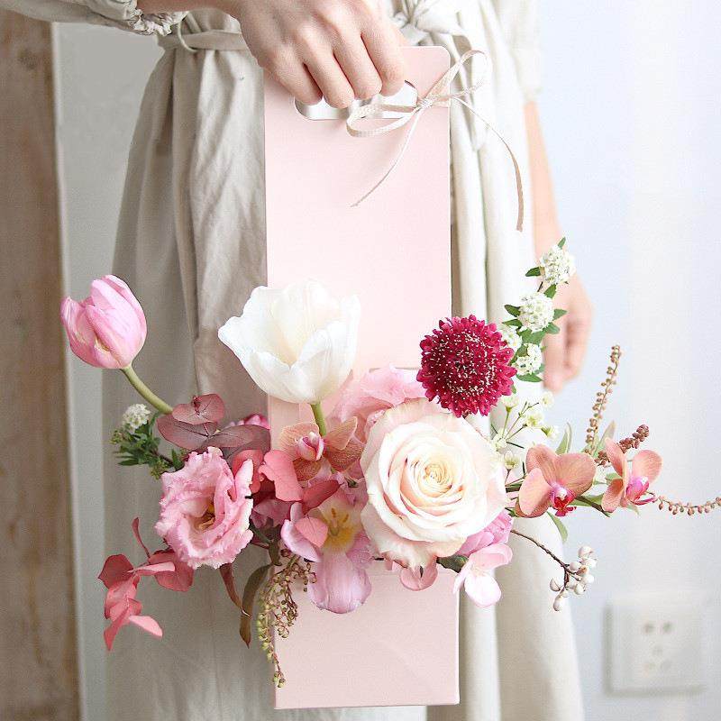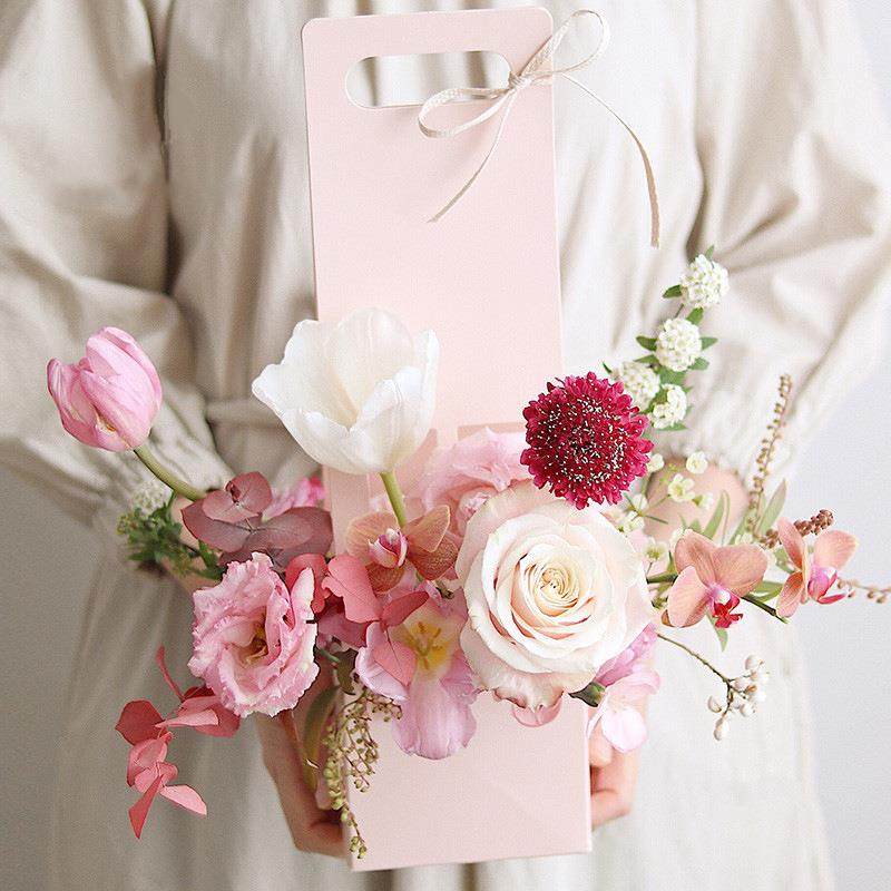 纸质手提花篮情人节插花盒包花材料手提花盒纸鲜花手提袋定制