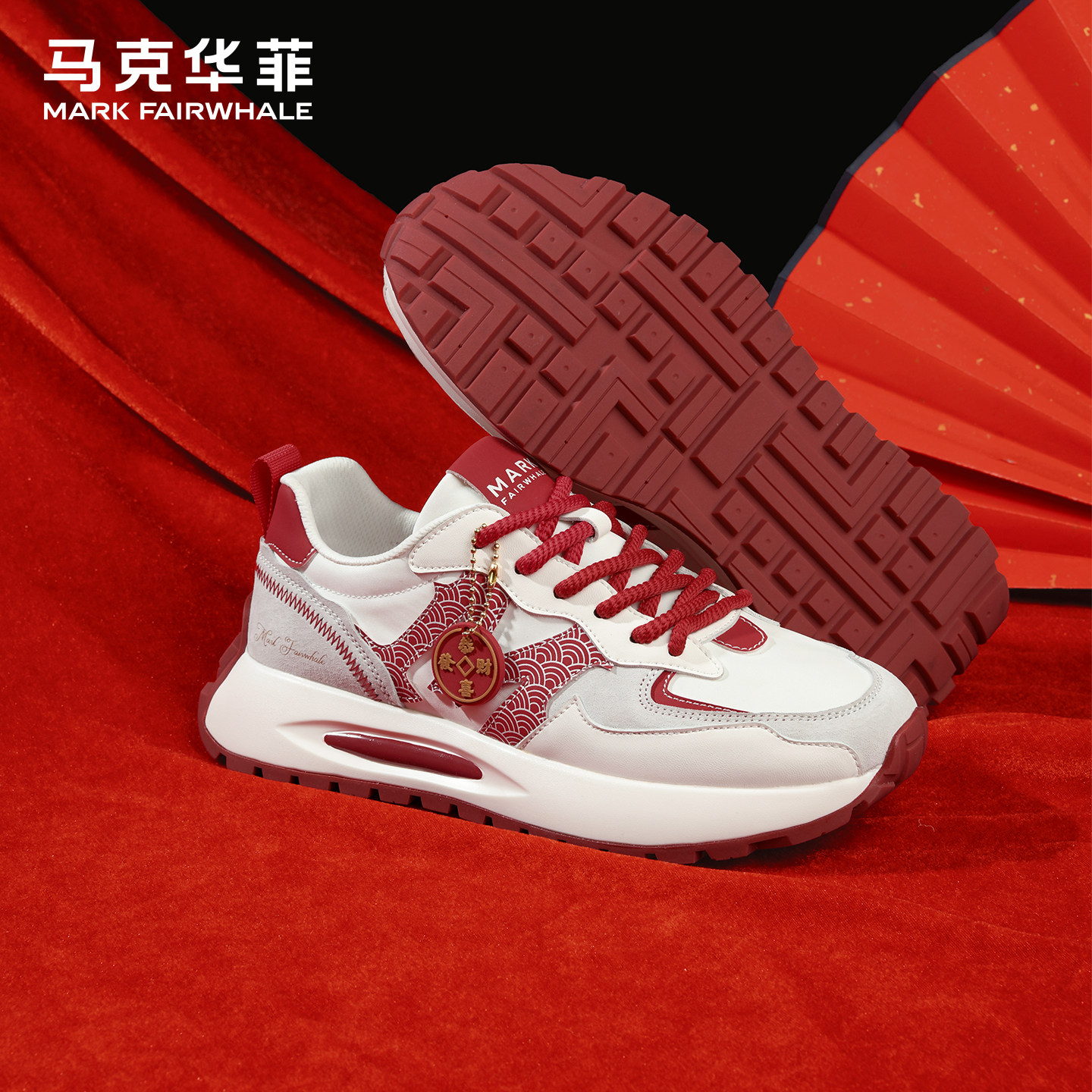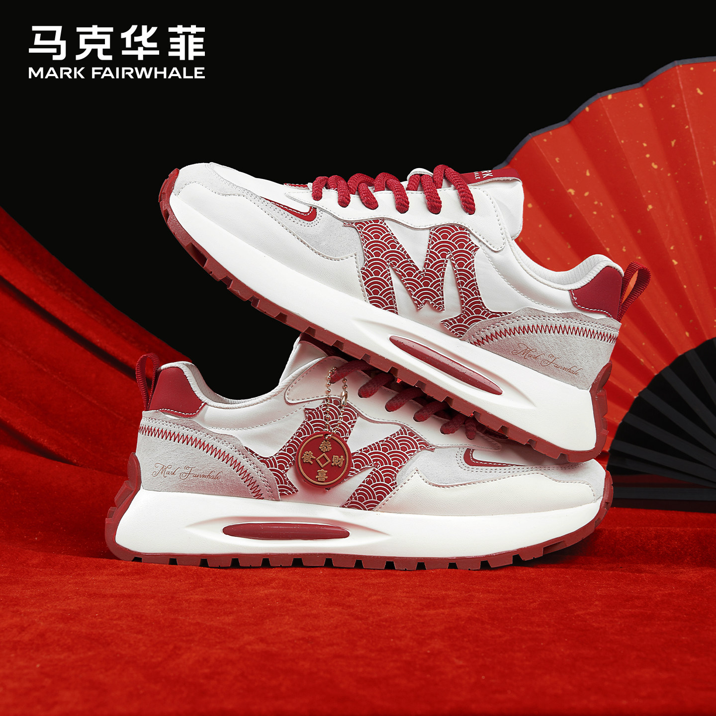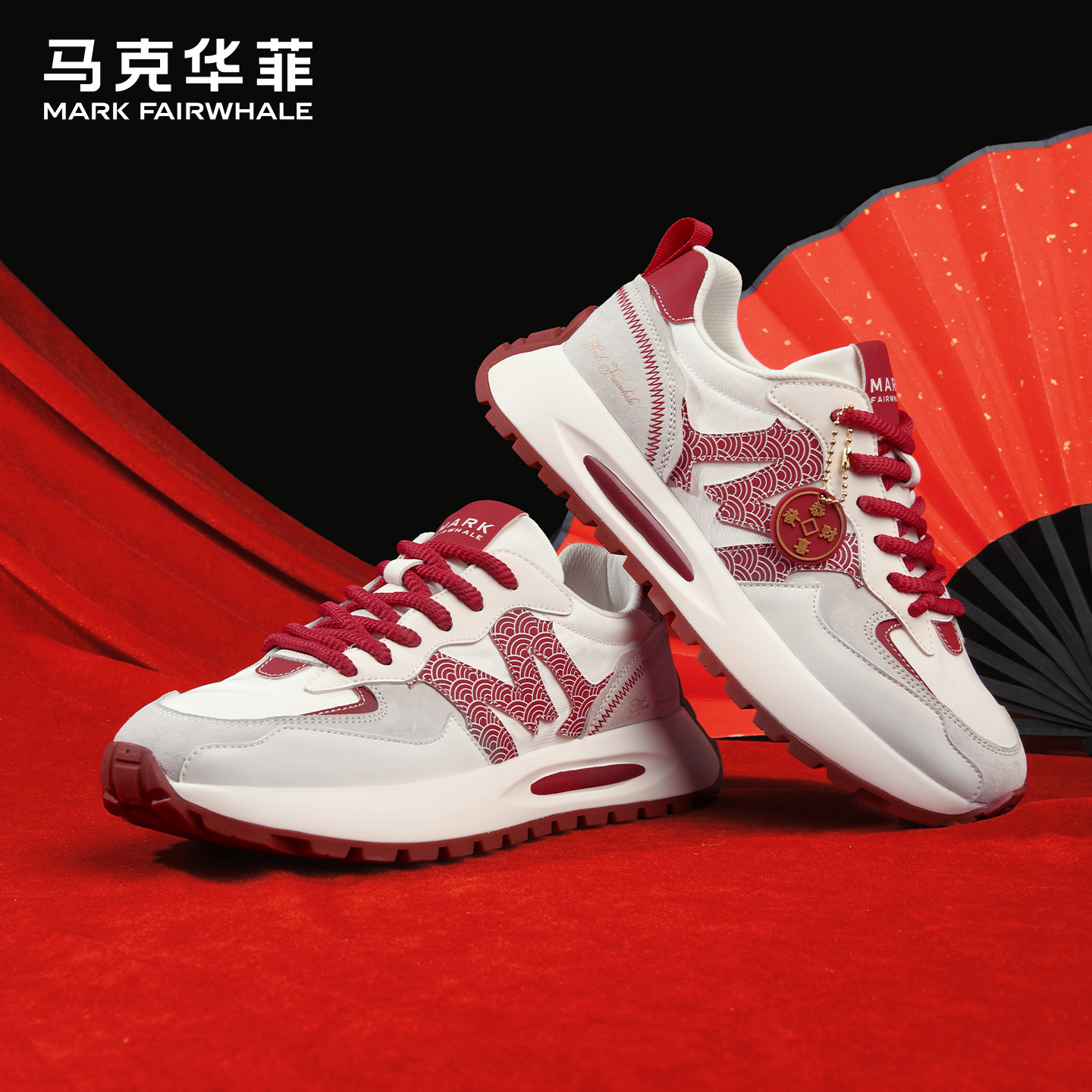 马克华菲阿甘鞋男2026新年新款本命年红色运动男鞋增高潮鞋休闲鞋