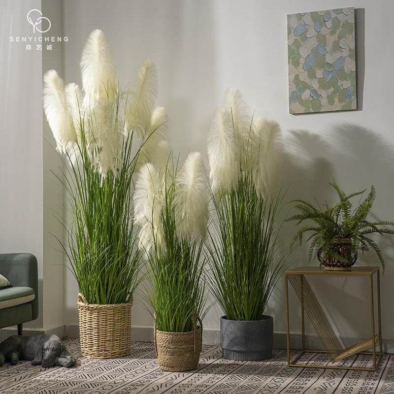 高档芦苇草仿真花假树植物盆栽客厅室内仿生绿植装饰橱窗造景摆件
